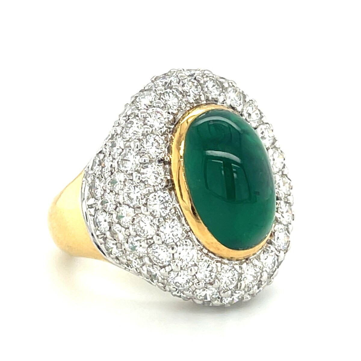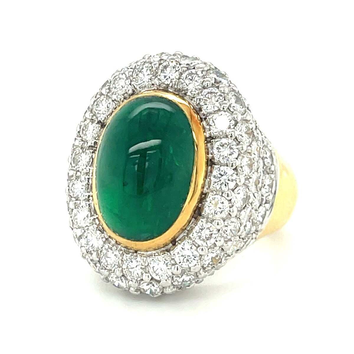 18k Bi-Colored Gold, Oval Cabochon Emerald, and 5.6ct Diamond Ring Size: 7 1/4
