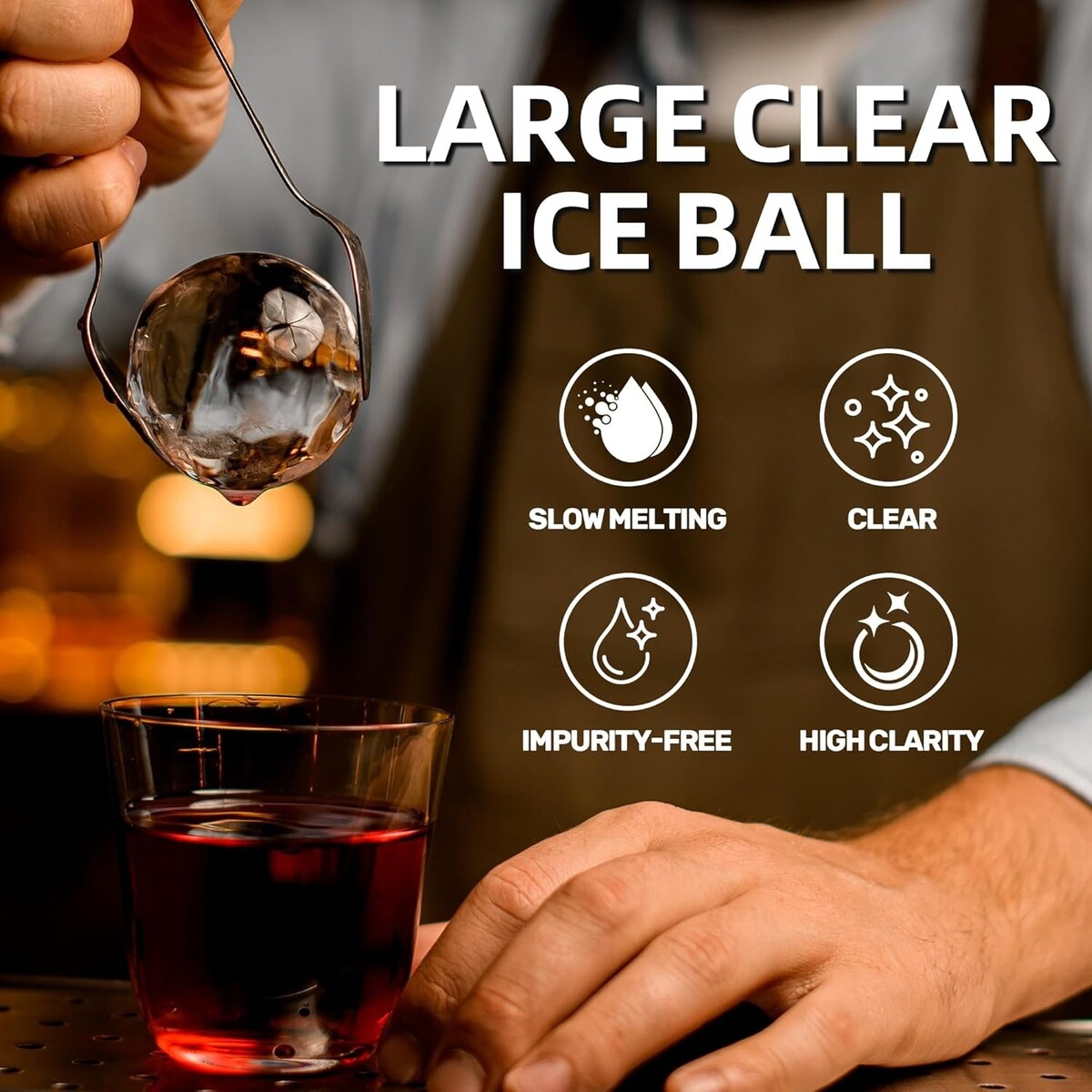Produces 2.5-inch large, round ice balls that are ultra-clear and slow-melting.
