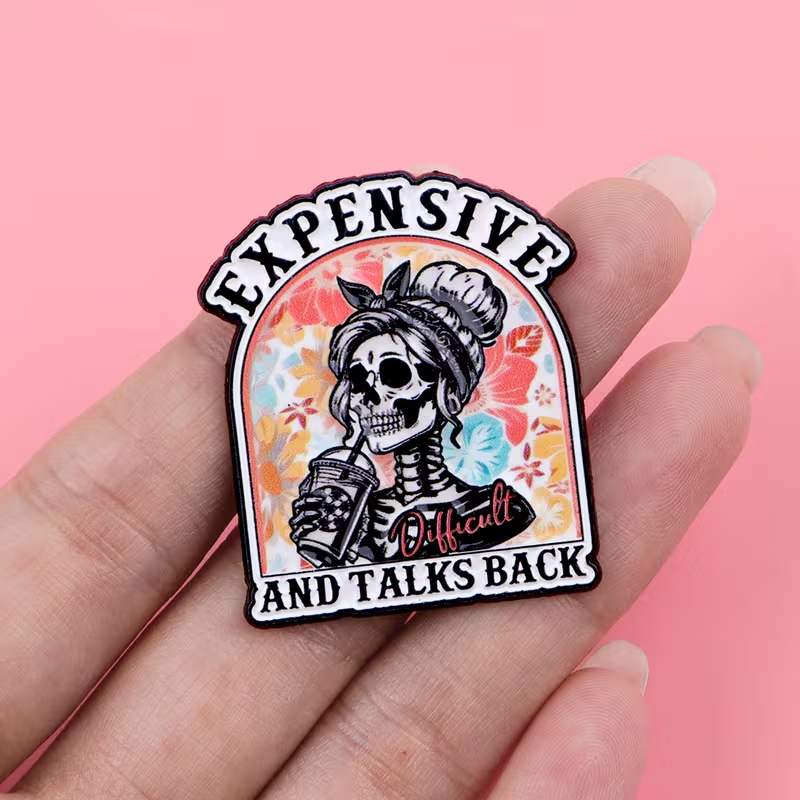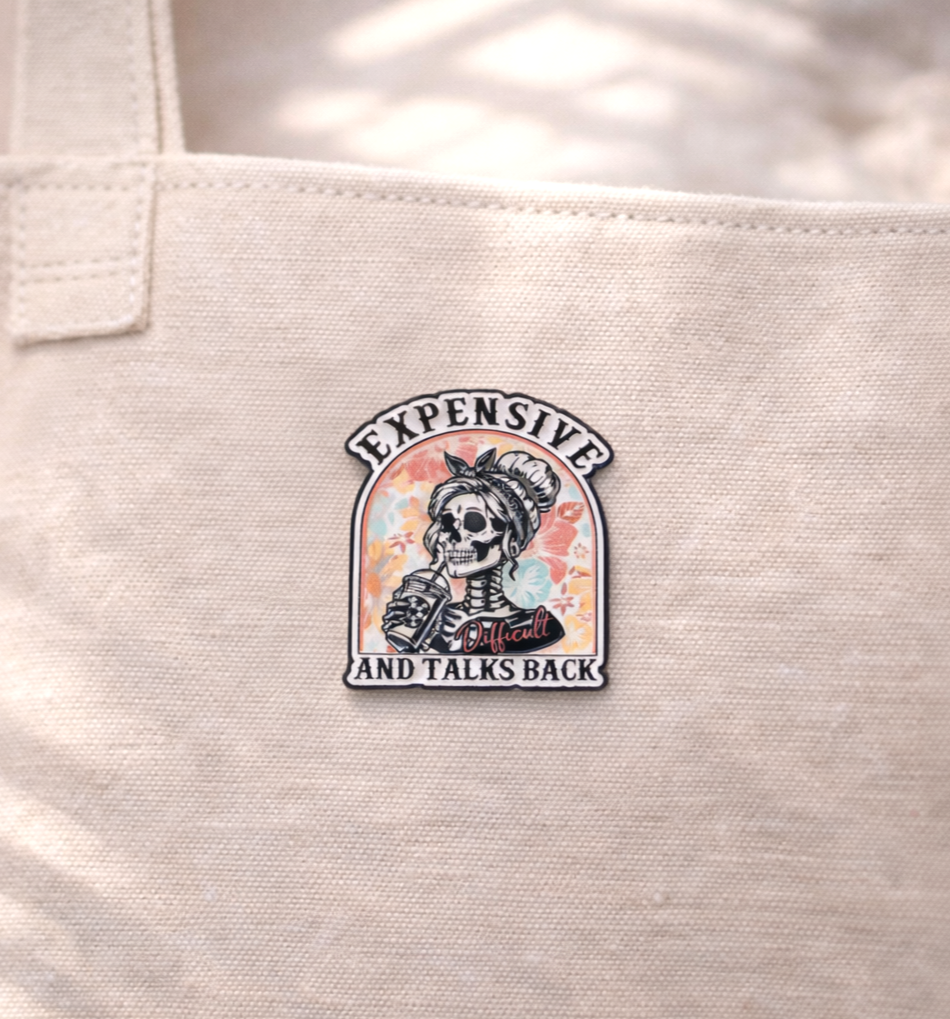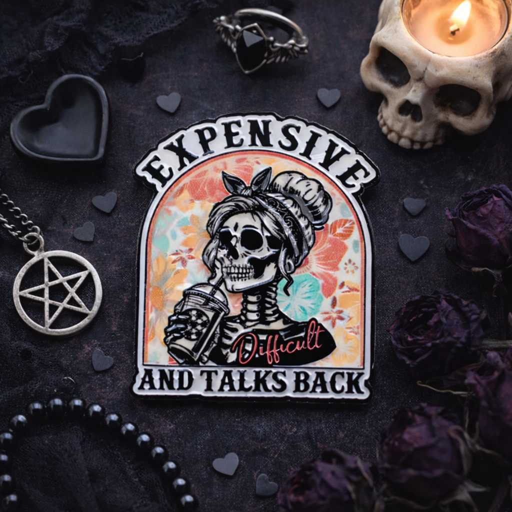 expensive and talks back pin, skeleton enamel pin, goth enamel pin, goth girl aesthetic, gothic accessories, sarcastic enamel pin, sassy enamel pin, funny skeleton pin, skull aesthetic pin, alt girl accessories, alternative fashion pin, pastel goth pin, cute goth pin, witchcore pin, witchy aesthetic pin, dark feminine pin, baddie aesthetic pin, cottagecore skeleton pin, retro skeleton pin, rockabilly skeleton pin, emo aesthetic pin, punk aesthetic pin, dark humor enamel pin, novelty enamel pin, sassy quote pin, coffee lover pin, iced coffee skeleton pin, cute gothic pin, feminine gothic style, halloween enamel pin, spooky aesthetic pin, pop culture skeleton pin, aesthetic lapel pin, collectible enamel pin, indie accessories, girl boss pin, attitude pin, edgy accessories, skeleton girl art pin, floral skeleton pin, pastel skeleton pin, vintage tattoo style pin, alt accessories, gothic fashion pin, alternative aesthetic gift, sarcastic gift idea, trendy enamel pin, baddie aesthetic, cute goth pins, gen z pins, boss babe pins, boss bitch, sugar baby pins, rich girl aesthetic.