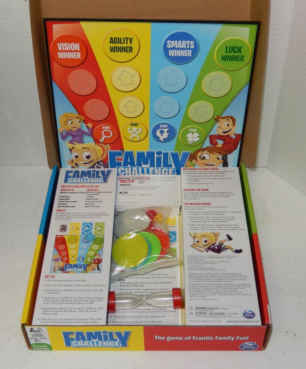 For Sale is a Spin Master Family Challenge Board Game 100% Complete. it in good Used condition but box does have some wear to it. comes with the Pieces as seen in the pictures provided what you see is what you will receive. Please ask Any and All Questions prior to purchasing. Fast Same or Next day shipping with Free Delivery Confirmation within the U.S. Payment Due within 7 days of purchase (if you need more time please let us know In advance) we love to combine shipping is always a Yes and Most of the time Additional Items Ship for free.