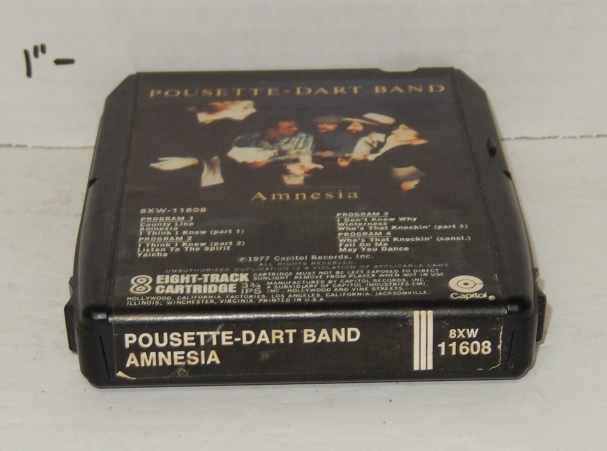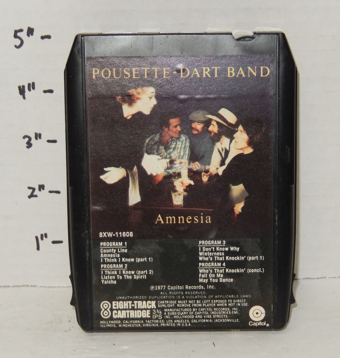For Sale is a 1977 Capitol Recrods 8 Track Tape Pousette-Dart Band Amnesia 8XW-11608 Rare OOP. In good USED condition Has been play graded. comes as pictured. we stand out from the rest as we ship all our media in boxes NO bubble mailers or Polybags here! Please ask Any and All Questions prior to purchasing. Fast Same or Next day shipping with Free Delivery Confirmation within the U.S. Payment Due within 7 days of purchase (if you need more time please let us know In advance) we love to combine shipping is always a Yes and Most of the time Additional Items Ship for free.