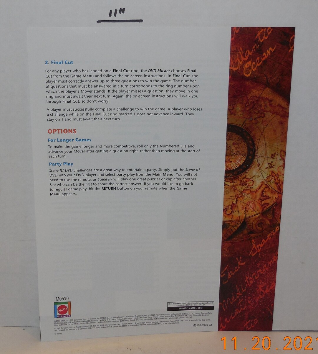 2007 Mattel Scene It Pirates Of the Caribbean Board game Replacement Instruction