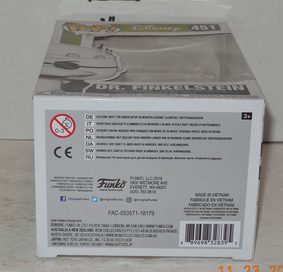 For Sale is a rare and hard to find 2018 Funko Pop Disney Nightmare Before Christmas Dr. Finkelstein #451 NIP as pictured NIP condition (box May have some ware please see pictures for more details) . would make a wonderful addition to any Toy collection. Please ask Any and All Questions prior to purchasing. Fast Same or Next day shipping with Free Delivery Confirmation within the U.S. Payment Due within 7 days of purchase (if you need more time please let us know In advance) we love to combine shipping is always a Yes and Most of the time Additional Items Ship for free.