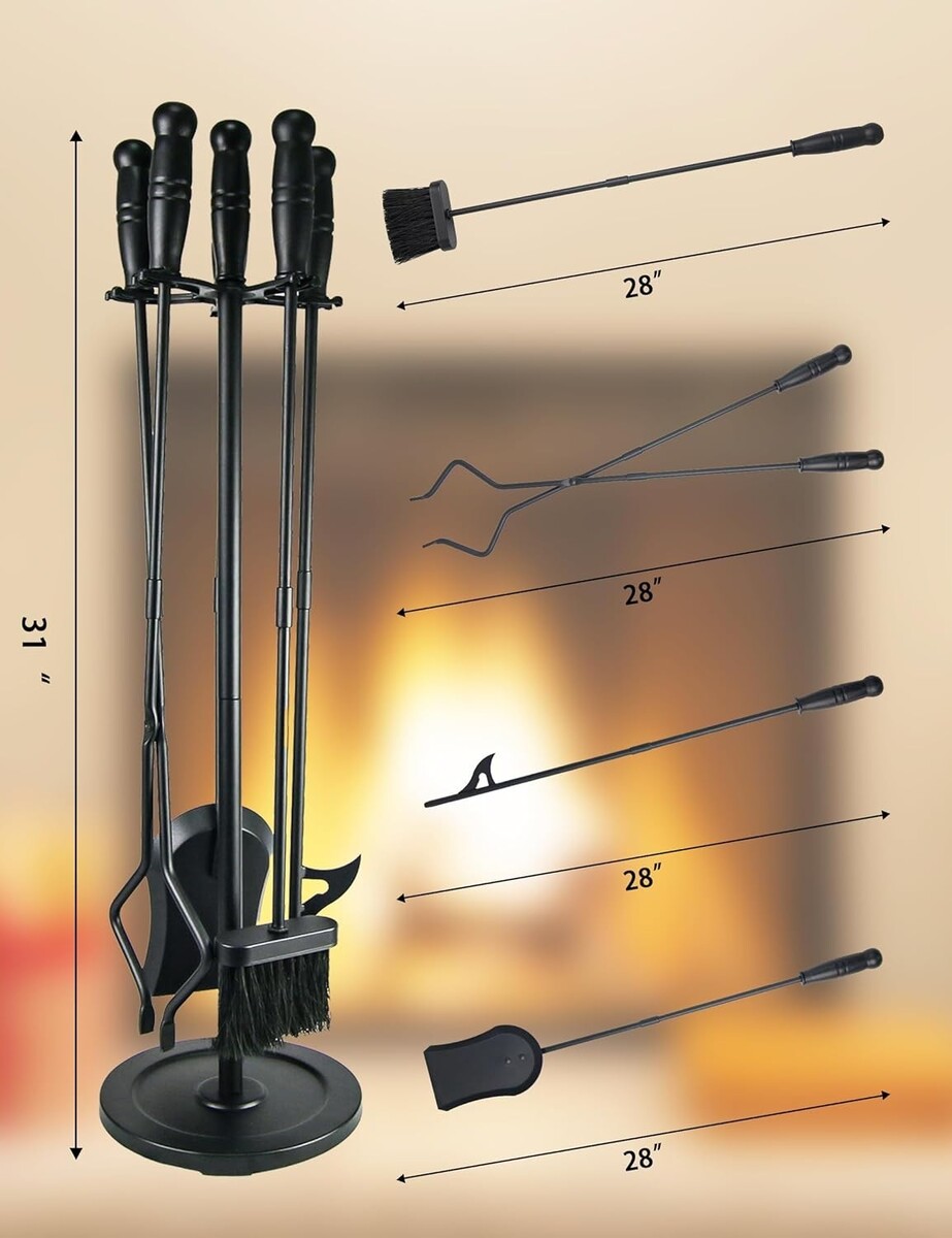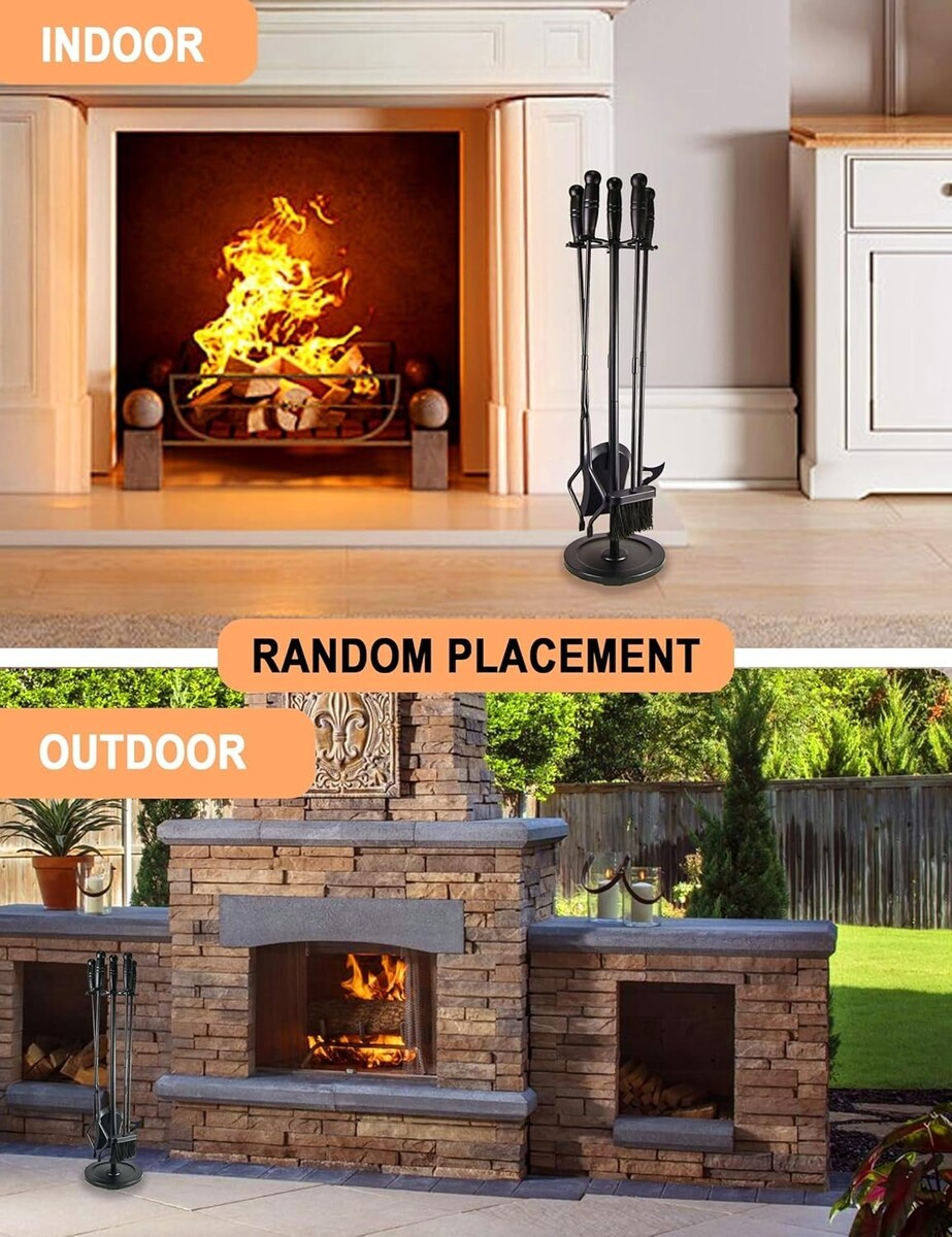 Effortless Assembly 5-Pc Fireplace Tool Kit - Ideal for Modern Home Design