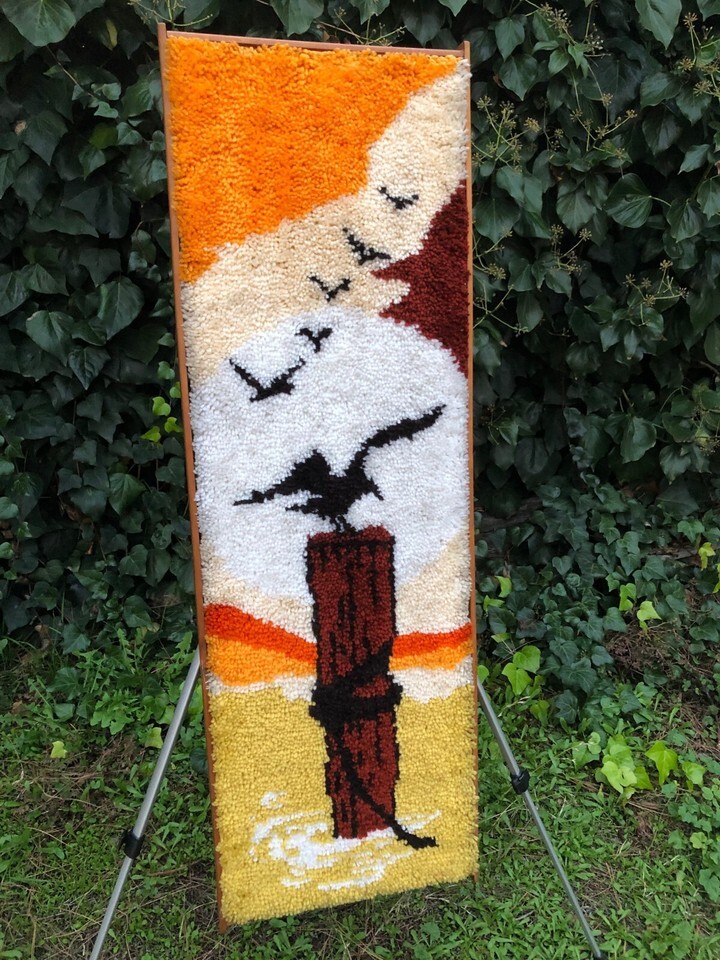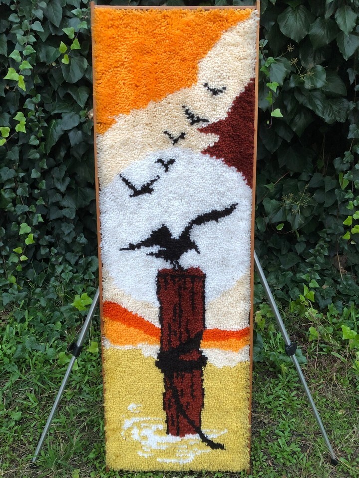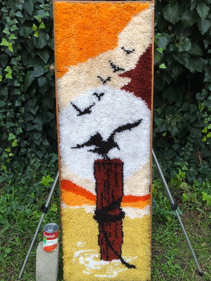 EMBROIDERY Original 1970s SCANDINAVIAN RYA RUG STYLE MODERN SEASCAPE SUNSET