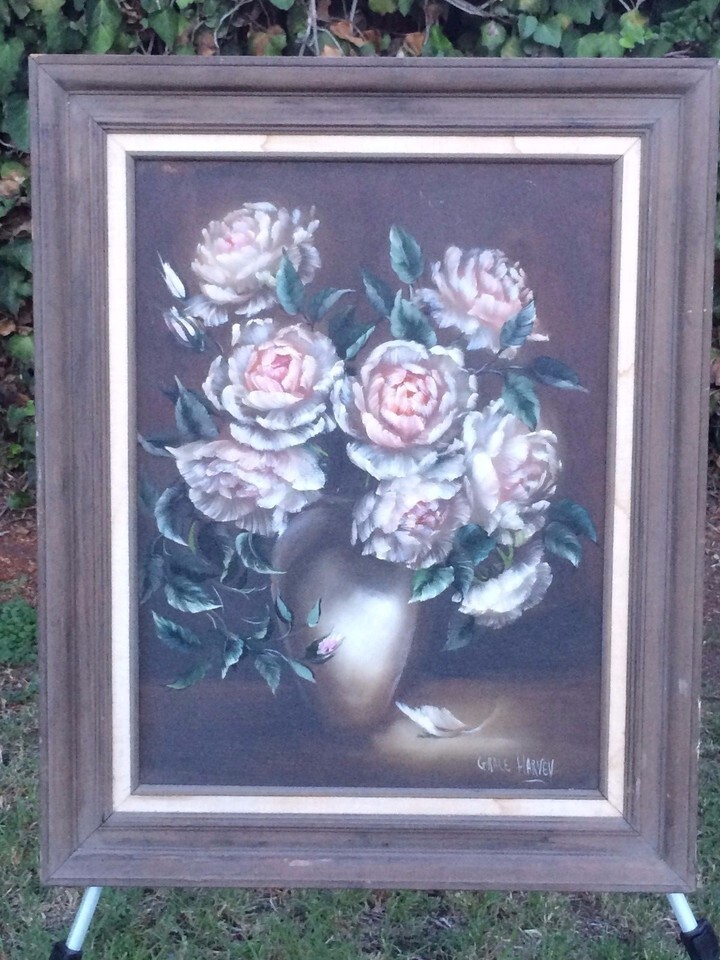 She used this training through the 1960s and 1970s to become a respected and prolific artist with a gallery in Reseda California. Her works often included seascapes, landscapes and floral still life paintings such as this piece.