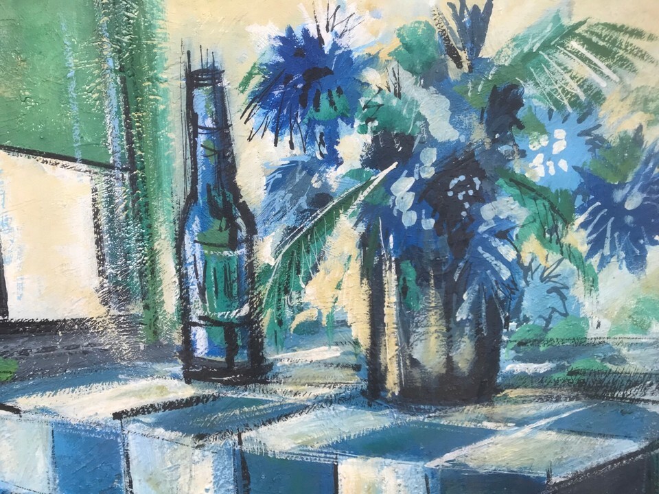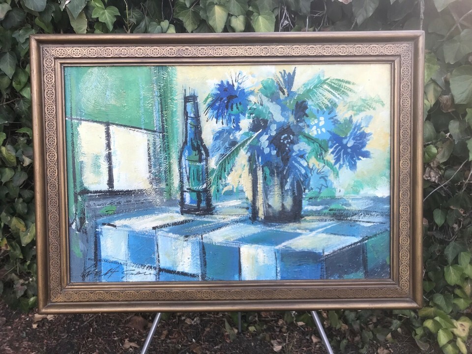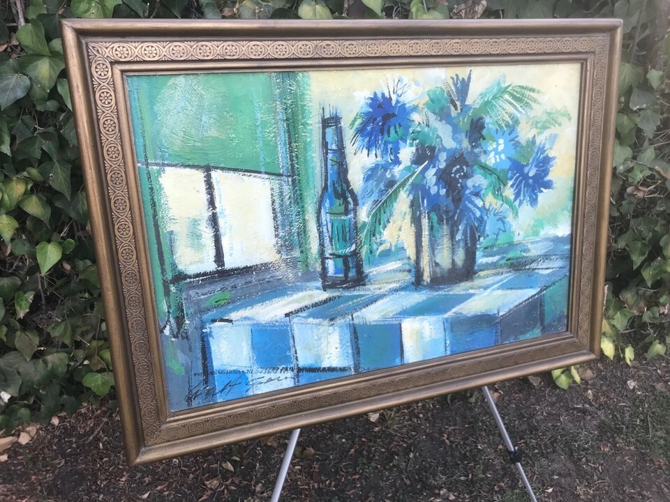WALT GREEN Original 1970s HUGE MODERN ABSTRACT STILL LIFE Oil & Board Disney Art