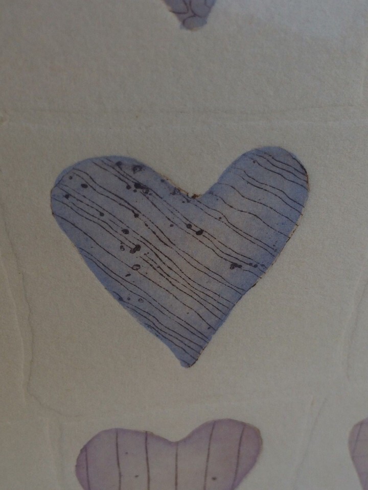 BROOKE MORRISON "Handmade Hearts" 3D COLLAGRAPH ART VINTAGE SIGNED Utah Artist