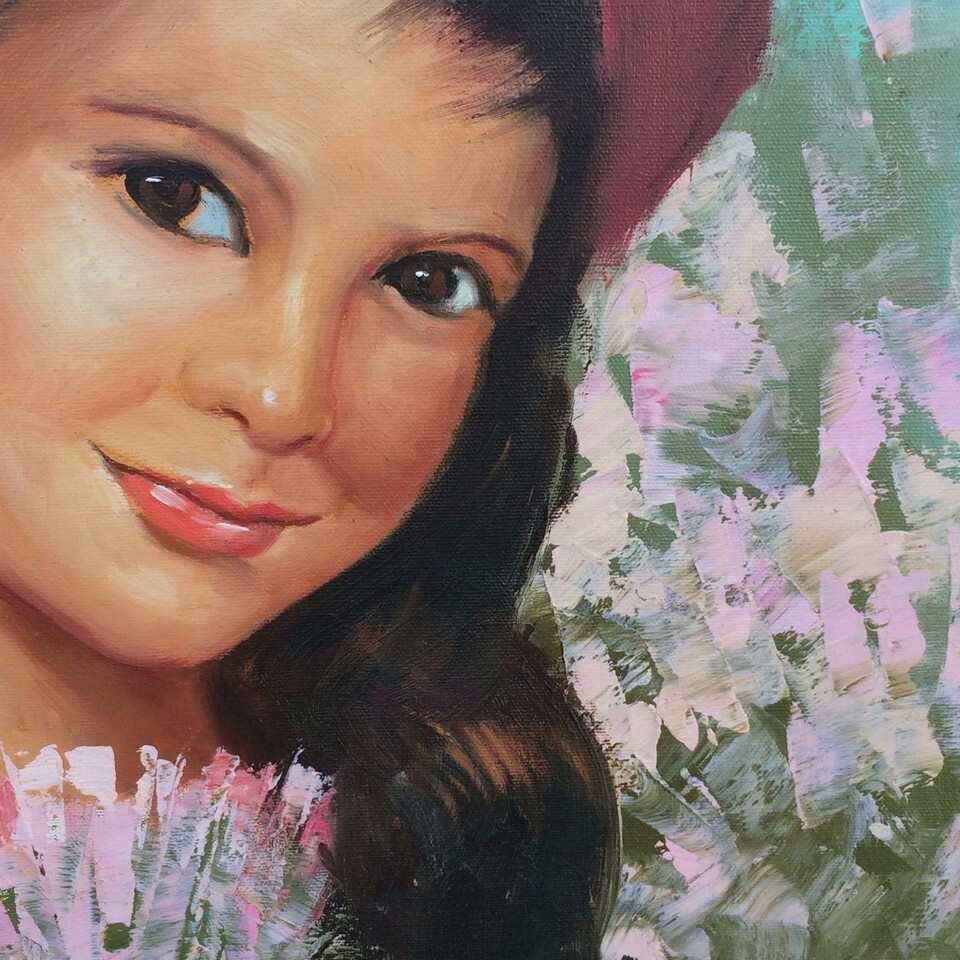 MID CENTURY ORIGINAL Oil on Canvas Signed w/ Gilded Frame "Portrait of a Girl"