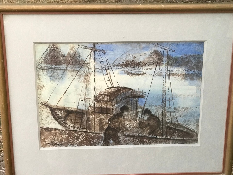 MARGIT ROTT Original 1950s WATERCOLOR SEASCAPE MID CENTURY MODERN IMPRESSIONIST