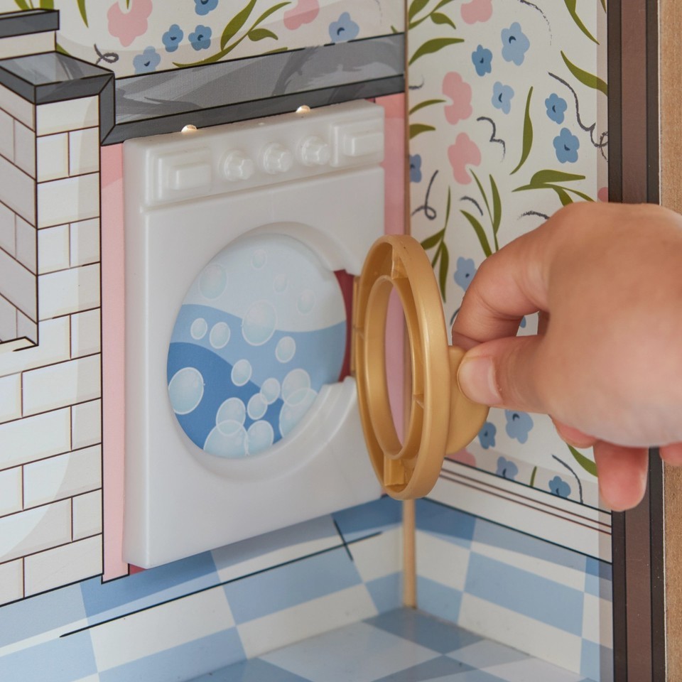 Role playing in this dollhouse is even more magical with the open and close washing machine and refrigerator.