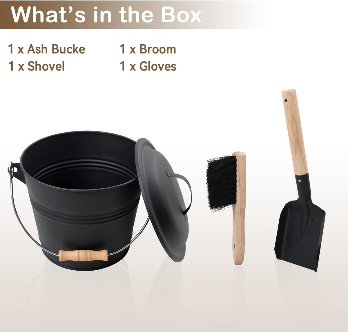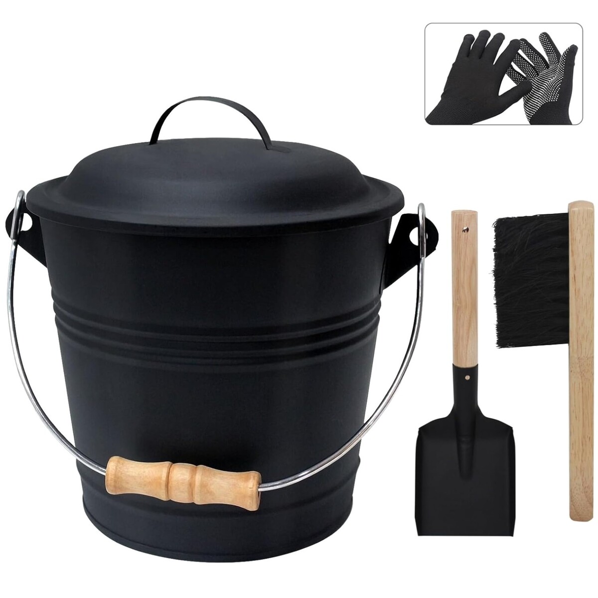 Elegant 1.3 Gallon Metal Ash Bucket with Lid & Tools - Perfect for Fireplaces