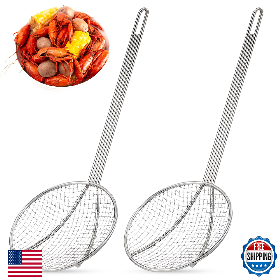 Baderke 2-Pack 16" Stainless Steel Round Wire Skimmer Strainer Fryer Spoon