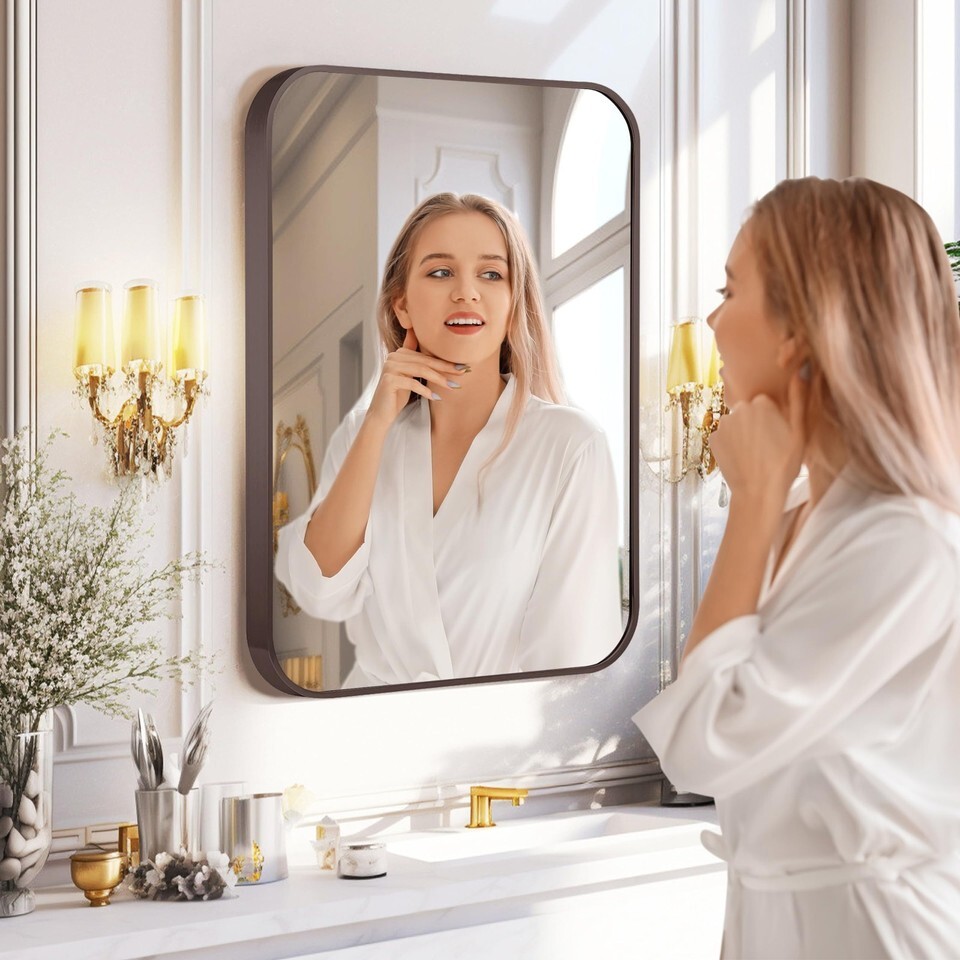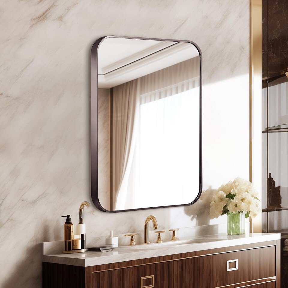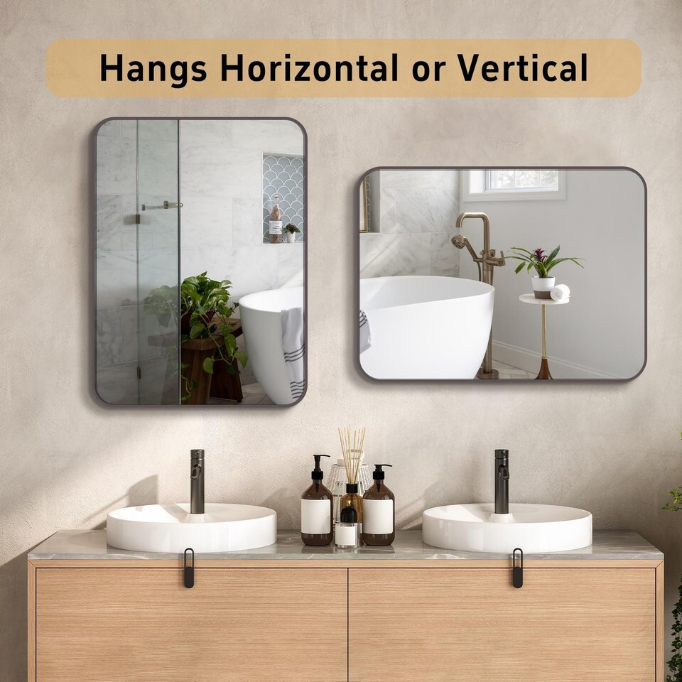 Umzodo 20"x30" Brushed Titanium Bathroom Mirror Dark Grayish Brown Rounded Recta