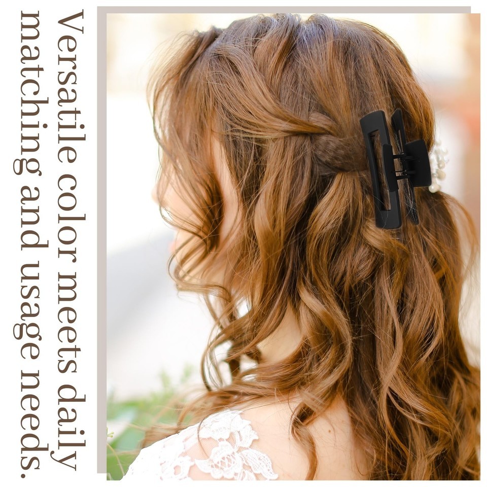 Abundance of Varied Options: our set comes with a generous quantity of 48 black rectangular hair clips, You can wear it in most occasions, meeting daily hairdressing and accessories needs,Suitable size: varied styling possibilities with our ideally sized hair clips for women measuring approximately 4.1 inches/ 10.5 cm, these hair clips are light and won't put much strain on your hair or scalp; They're generous enough to accommodate dense hair, curly hair, and medium to long hair lengths effortlessly,Comfort and reliable: made from resin plastic materials and solid metal springs, these black claw clips are designed to stable; The smooth, matte surface of each clip is gentle on your hair, while the sturdy spring and teeth shape design ensure non slip, robust grip for lasting use, not easy to breaking or fading,Elegant Stylishness: elevate your style with our square square hair clips, their elegant, generous dimensions coupled with the matte finish lend an elegant look to these hair accessories; Black color is extremely versatile, matching nicely with various hairstyles and attires,Versatile for Numerous Occasions: aside from everyday use, these hair claw clips can be worn for a wide range of occasions; Whether it's a wedding, birthday bash, beach party, Christmas gathering, or club activities, they'll add a charm to your ensemble, making them the ideal gift choice for women and girls