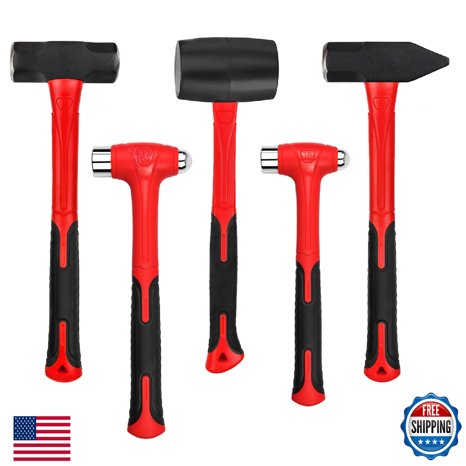 C&T 5-Piece Hammer Set: 16oz Ball Peen, Rubber Mallet, Sledge, Cross Peen