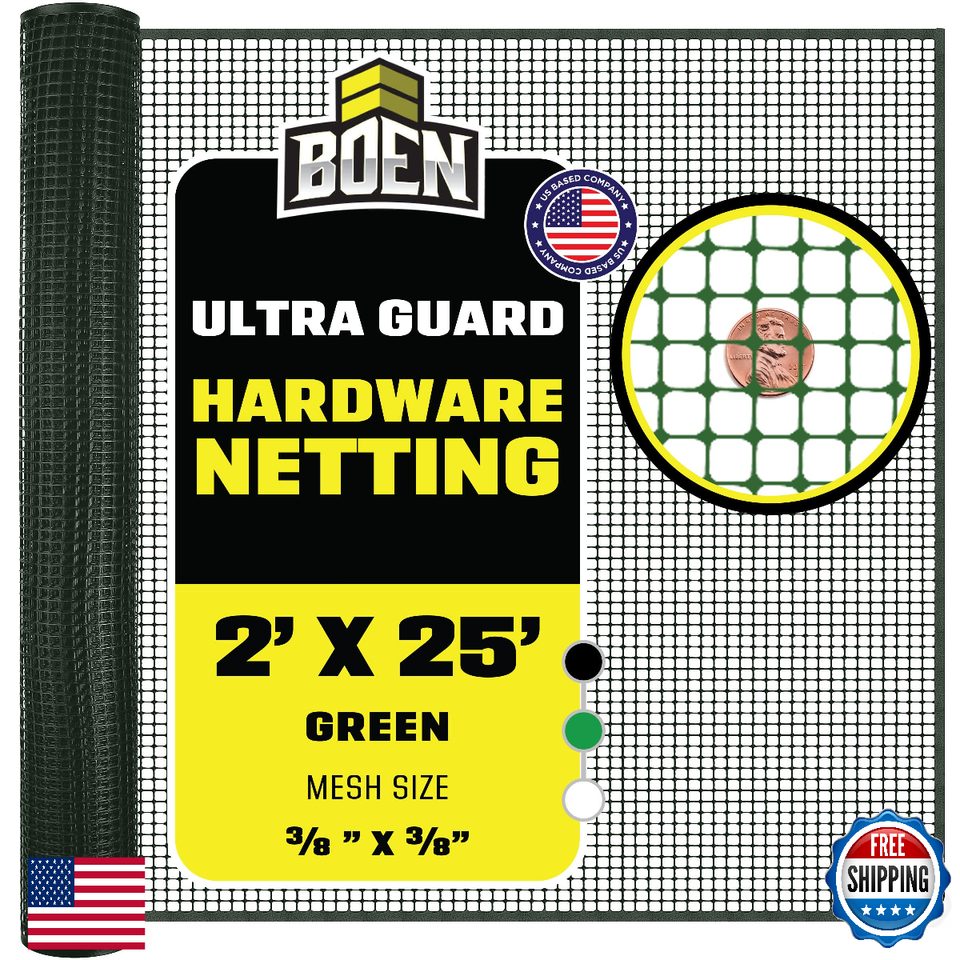 BOEN Green Plastic Mesh 2'x25' Tree Guard, Garden Barrier Netting for Rabbits