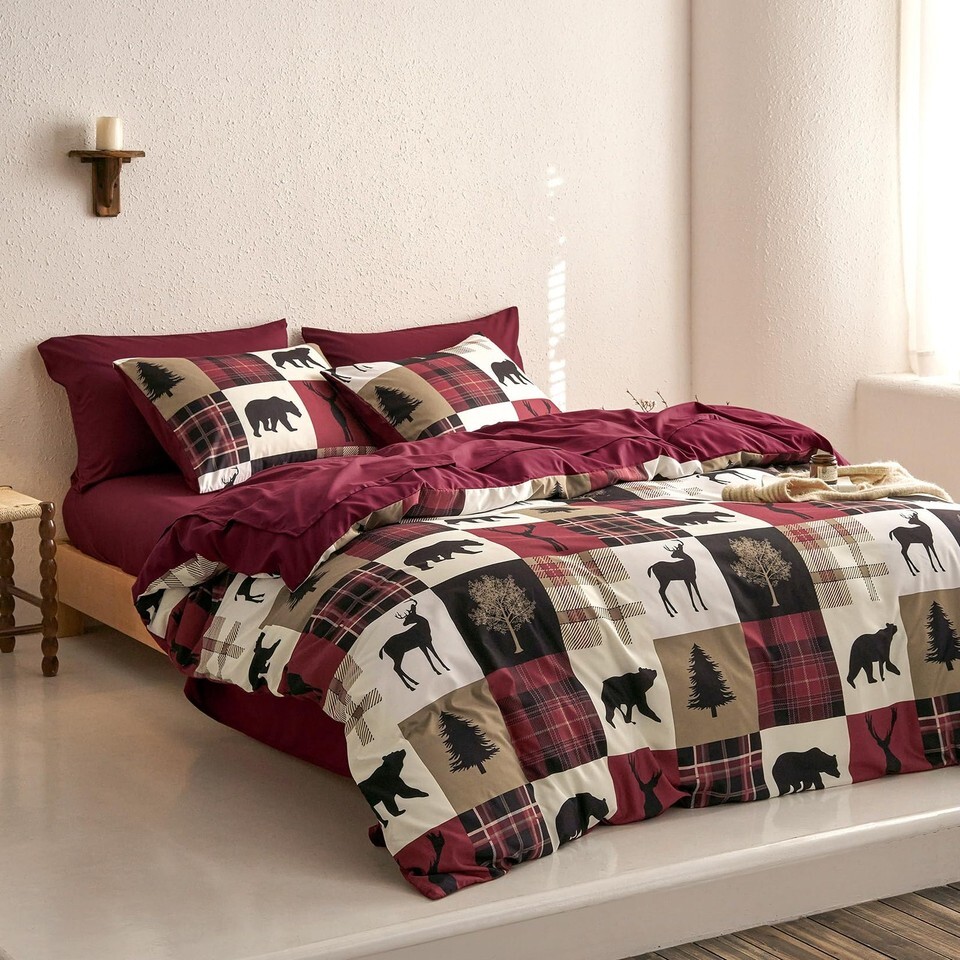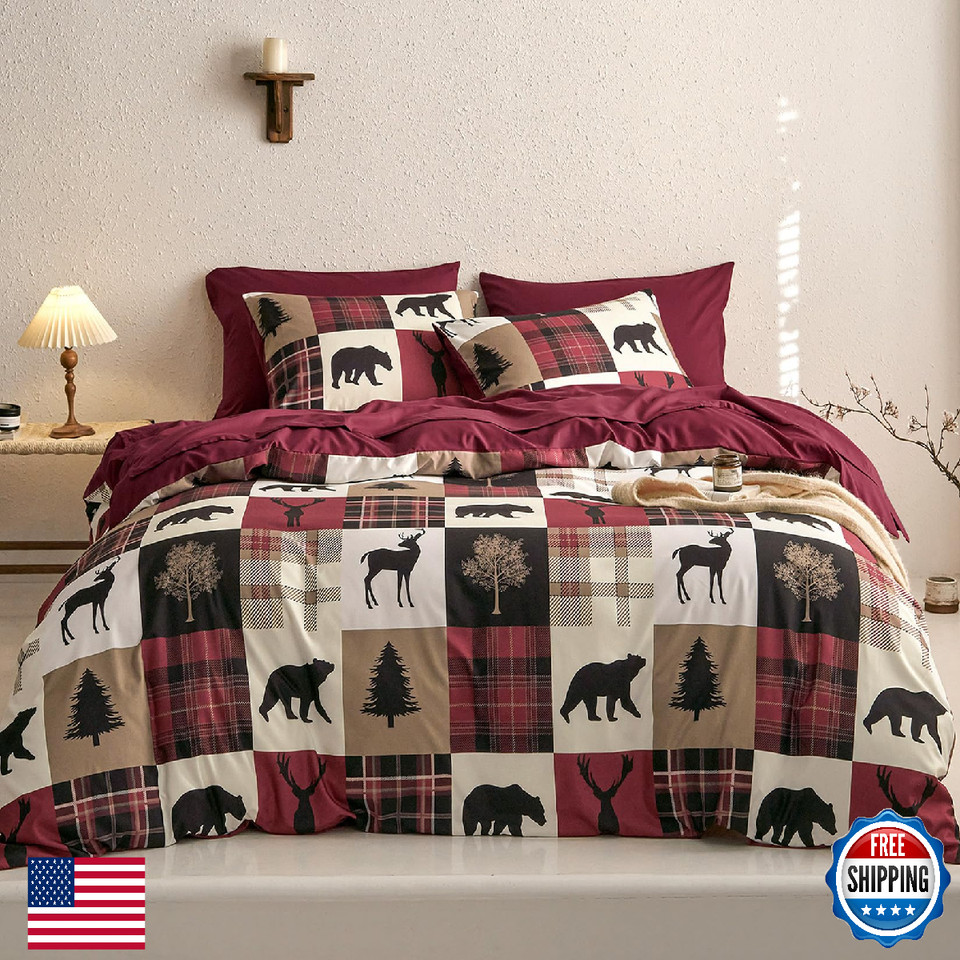 Wake In Cloud Rustic Comforter Set Queen Lodge Woodland Bear Moose Deer