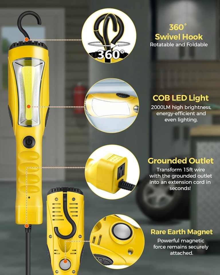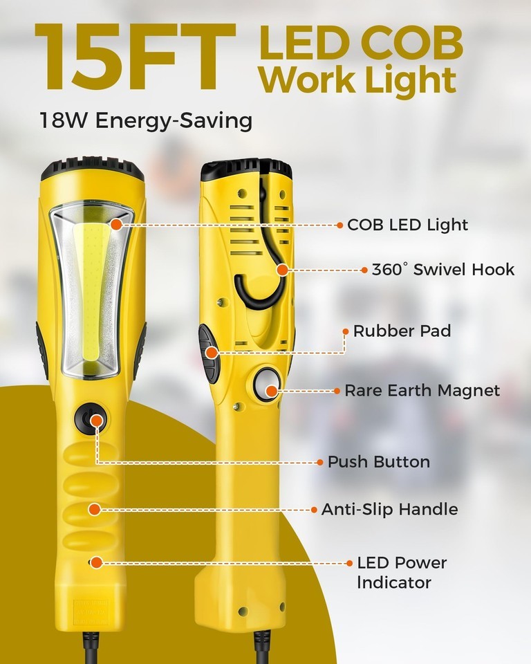 WILAWELS 18W LED Work Light 15FT 2000LM COB Handheld Underhood Trouble Light