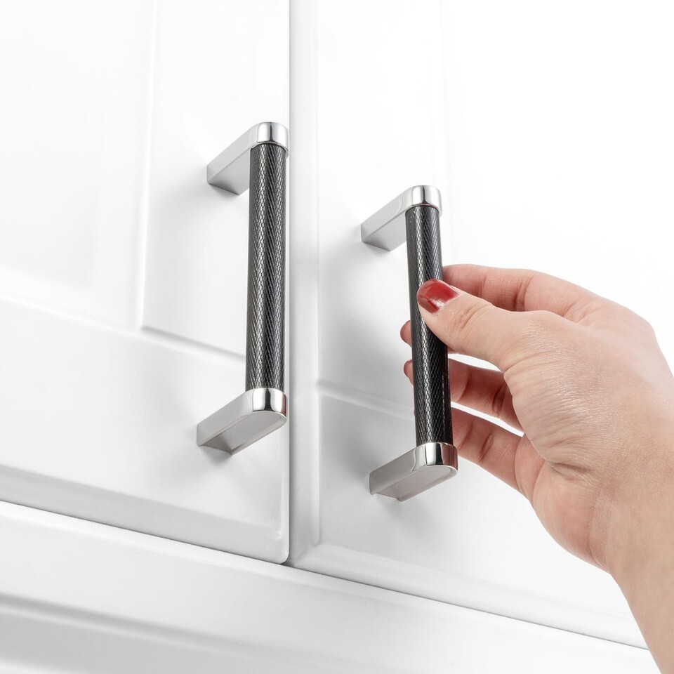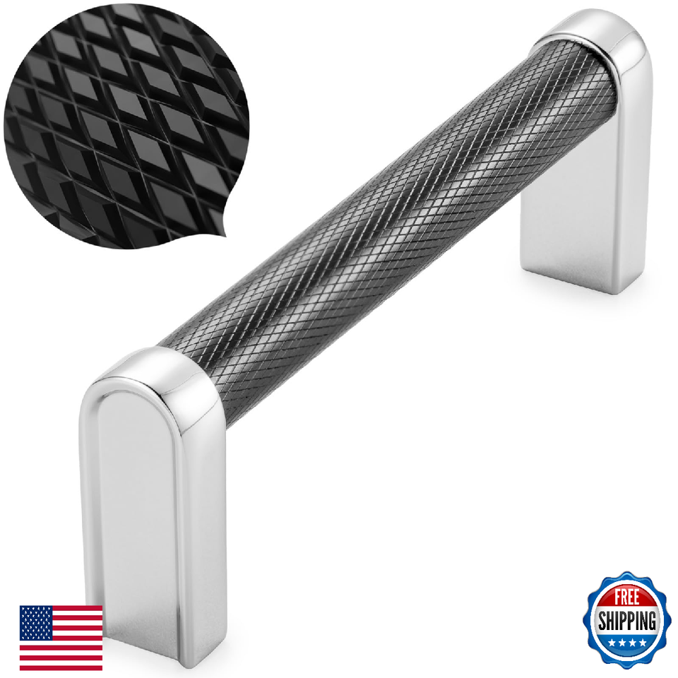 KOOFIZO Black/Chrome 10-Pack Knurled Cabinet Pulls, 3-3/4" (96mm)
