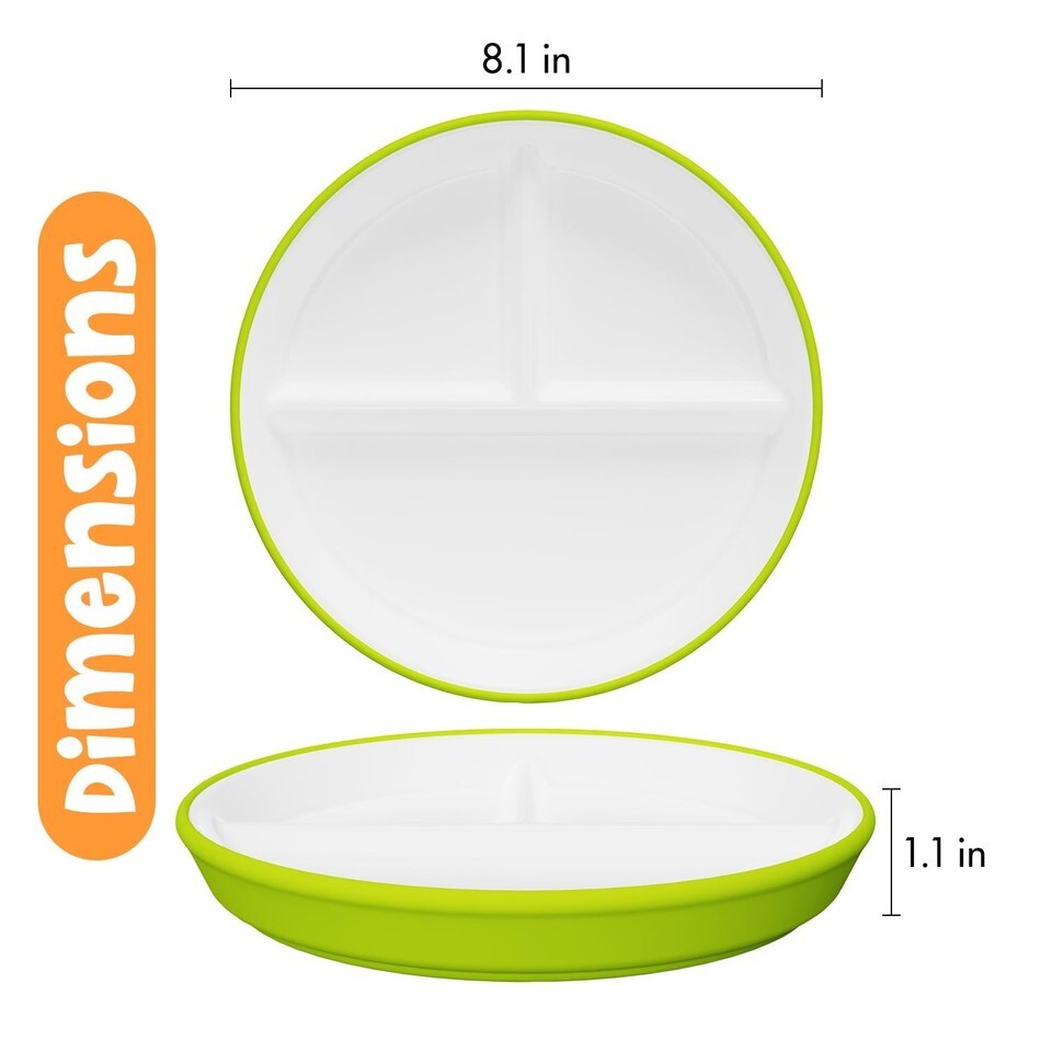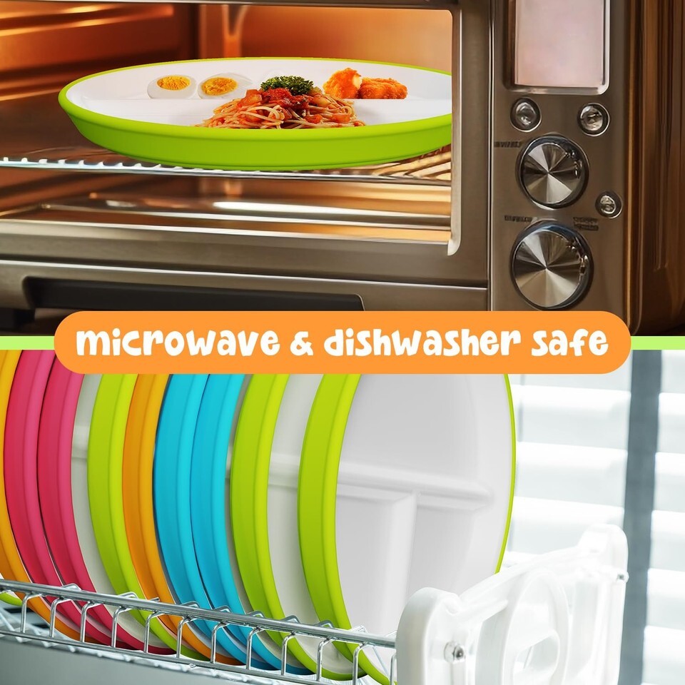 Kids Porcelain Divided Plates w/ Anti-Slip Silicone Sleeve | Microwave & Dishwas
