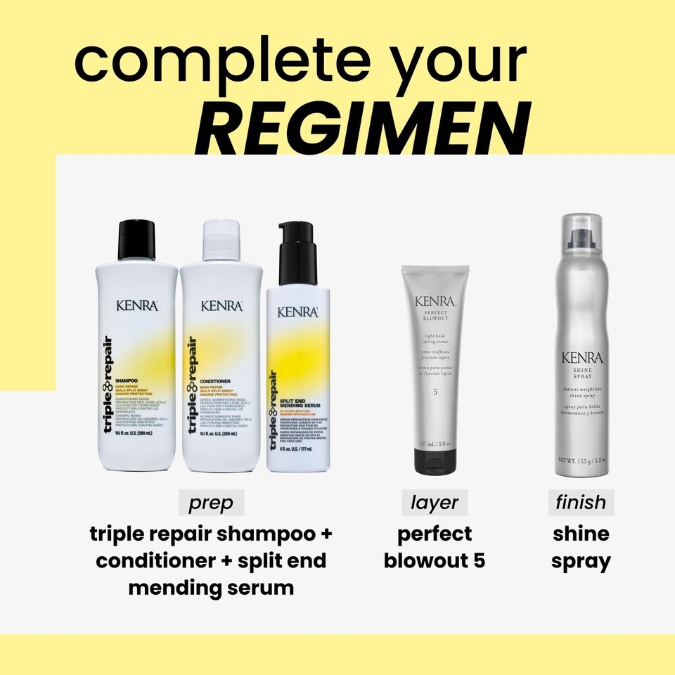 Kenra Triple Repair bond products are scientifically formulated to offer 3 benefits. Formulas target repair damage where needed plus prevent further hair damage when used as a system. 1. Targets and repairs weak or broken bonds inside the hair. Reduces breakage by over 89% against combing breakage on damaged hair vs. a non-conditioning shampoo 2. Seals outer cuticles, visibly mending up to 90% of split ends with each use. 3. Formula with peptides and amino acids help fortify and protect strands against everyday damage and environmental stressors. Reveal healthy looking hair, resilient to breakage and color fade* in one use! *vs. a non-conditioning shampoo