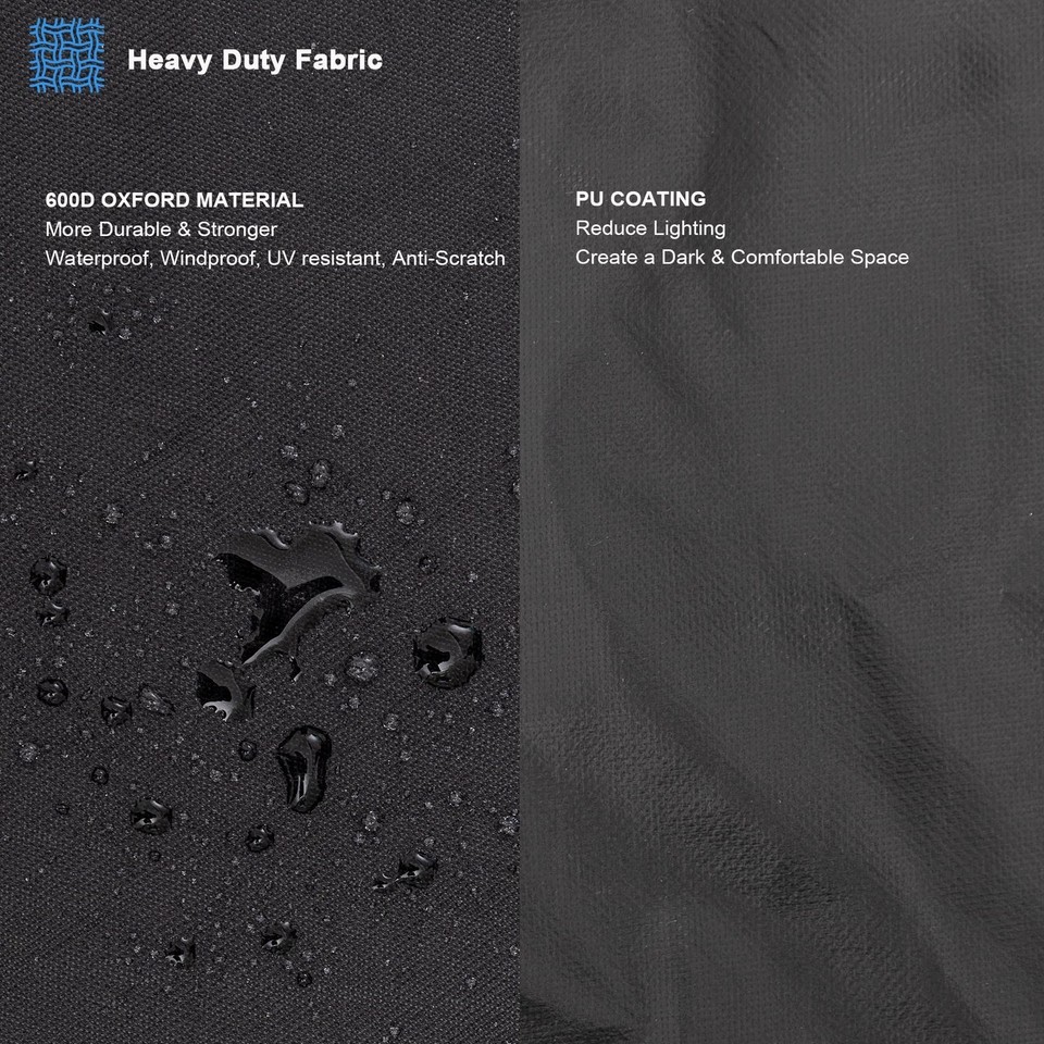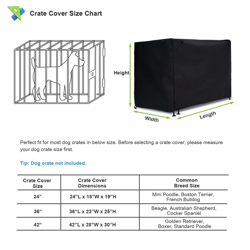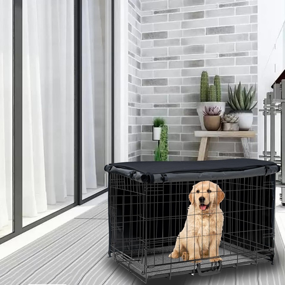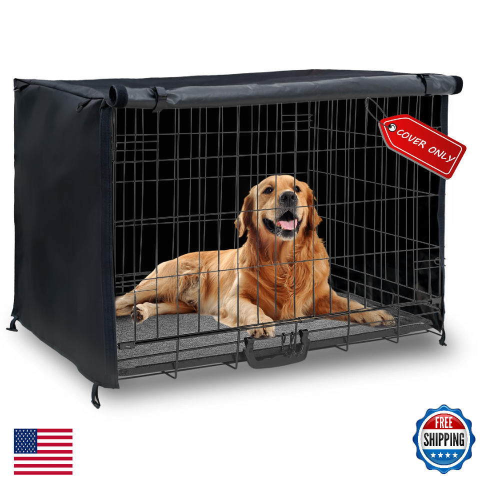 HEAVY DUTY FABRIC: Dog crate cover is made of deluxe 600D oxford material and PU coating, which provide stronger waterproof, windproof, UV resistant, scratch resistant, anti-aging rather than other 300D, 420D oxford fabric.,QUIET PRIVACY RELAX: Kennel cover can block the open environment of a wire dog cage, providing that secluded secure feeling. It ensures that your pet does not react to the environment around them, allowing them to rest and relax.,BREATHABLE VENTILATION: Two rolling doors are in different directions, which can meet the needs of your wire crate to allow your pet to enter and exit. Breathable mesh window with flap could adjusts air circulation and visibility.,CONVENIENT EASY TO INSTALL: The top zippered opening makes it easy to pull out the handles and move the crate anywhere. The 4-corner toggles on the bottom easily secure the cover to the wire crate, and the velcro on both sides of the roll-up door allows for adjustment of the gap to maintain air circulation.,UNIVERSAL SIZE: 42''L*28''W*30''H. Dog cage cover with 4 sizes options, which can fit most brands of 24 inch 30 inch 36 inch and 42 inch standard wire crate on the market. Package includes: 1x dog cage cover. (wire crate not included)