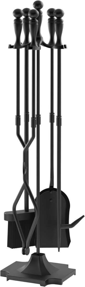 The complete set?poker, tongs, shovel, brush, and stand?ensures you have all the essentials at your fingertips, elegantly displayed in a classic black finish. Ideal for effectively managing firewood and maintaining a safe fire, this set is your perfect companion for cozy evenings by the fire.