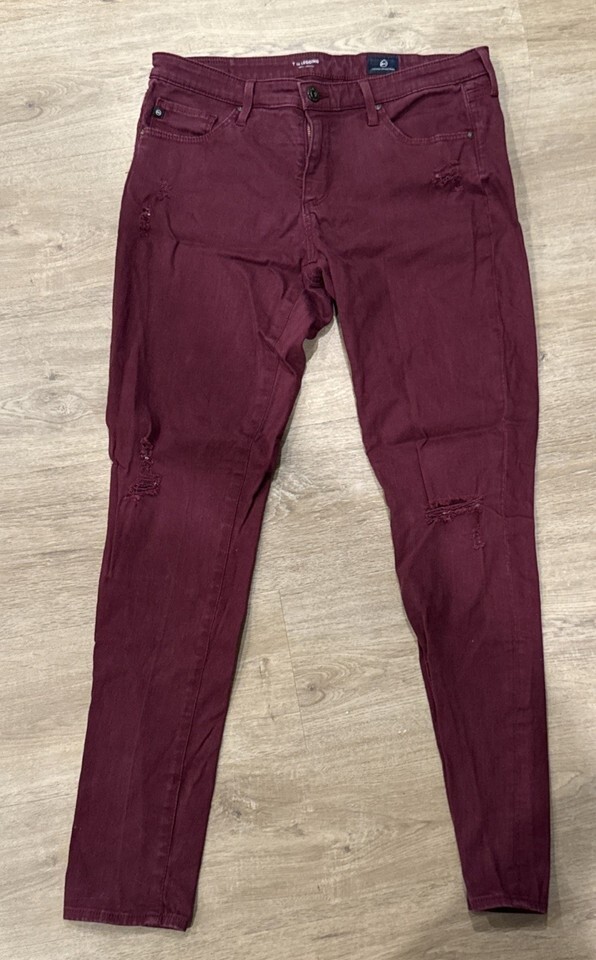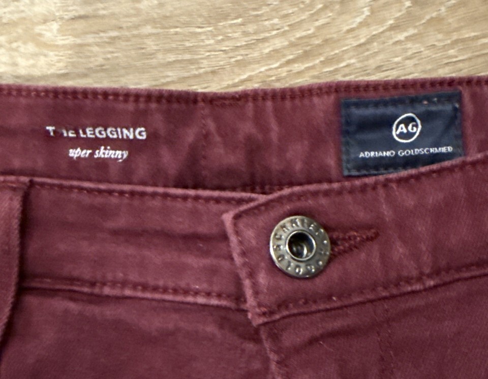 AG Adriano Goldschmied The Legging Super Skinny Jeans 30R Burgundy Distressed US