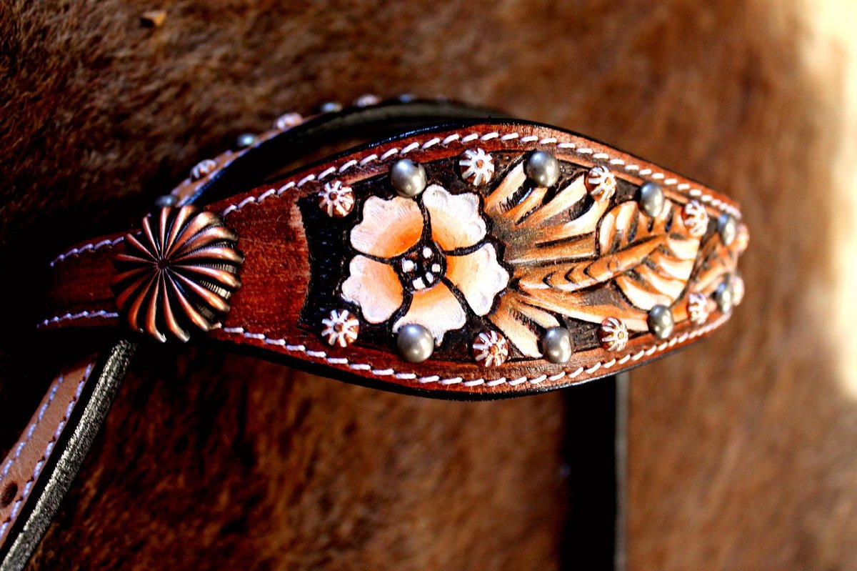Horse Western Floral Painted Inlay One Ear Headstall 8919AH