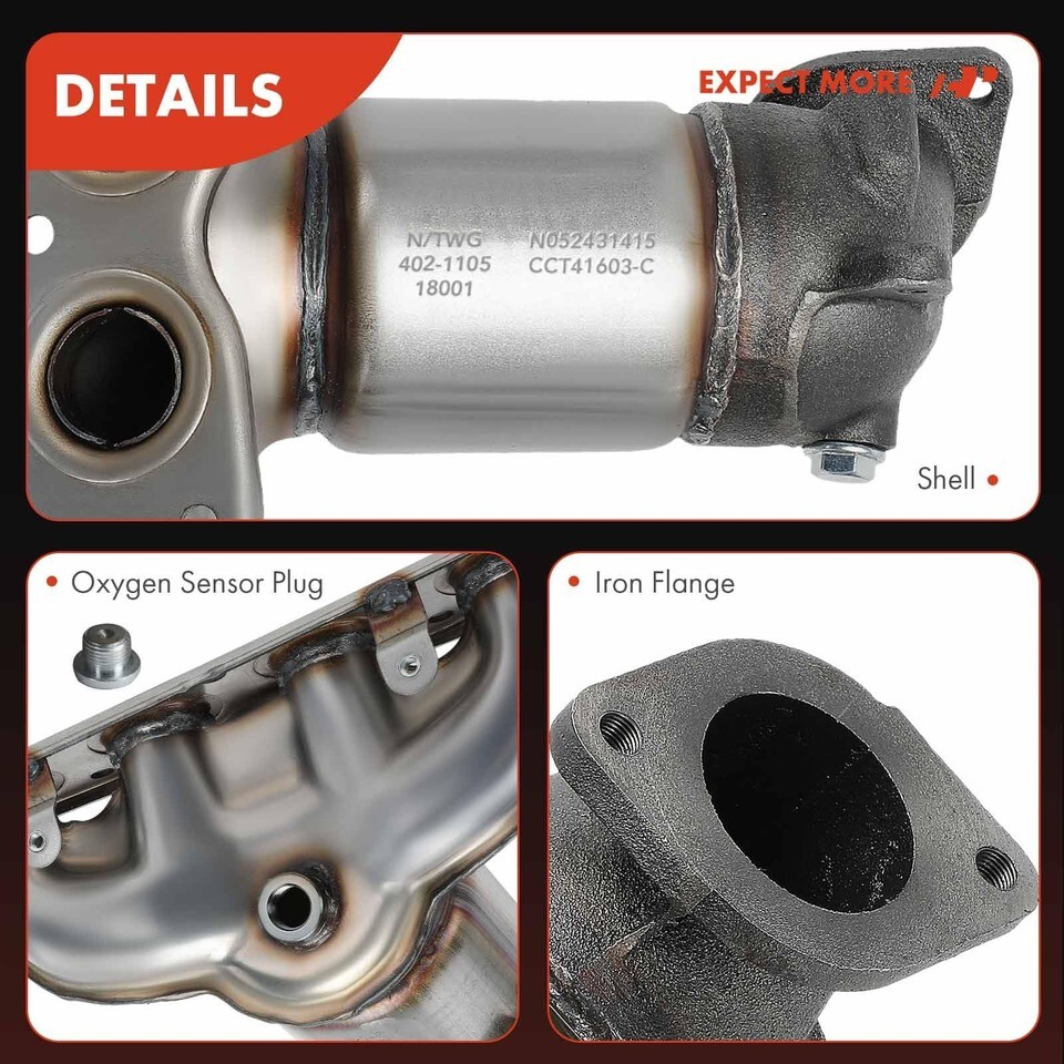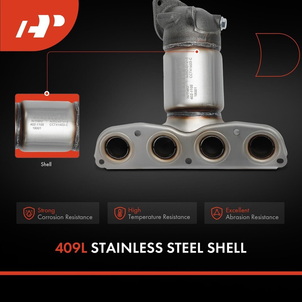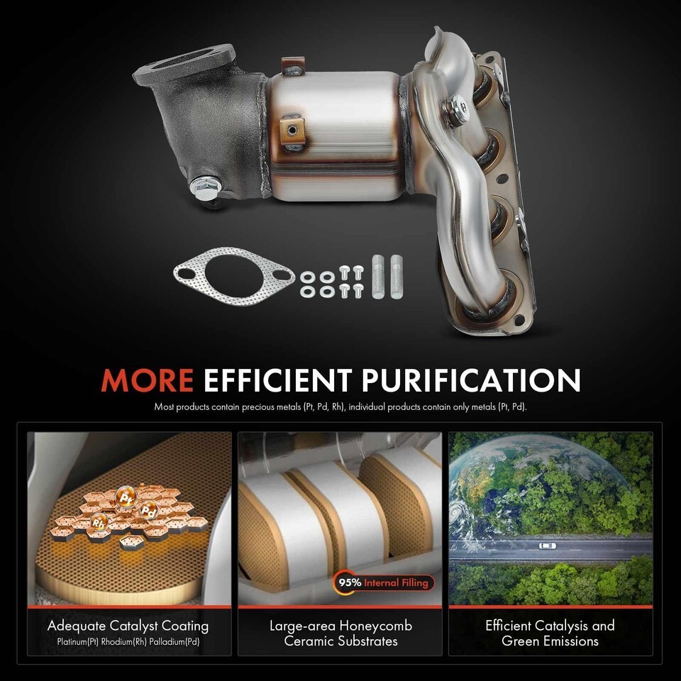 FRONT EXHAUST MANIFOLD CATALYTIC CONVERTER KIT: Direct-fit front-position manifold catalytic converter designed for precise installation and factory-style performance.