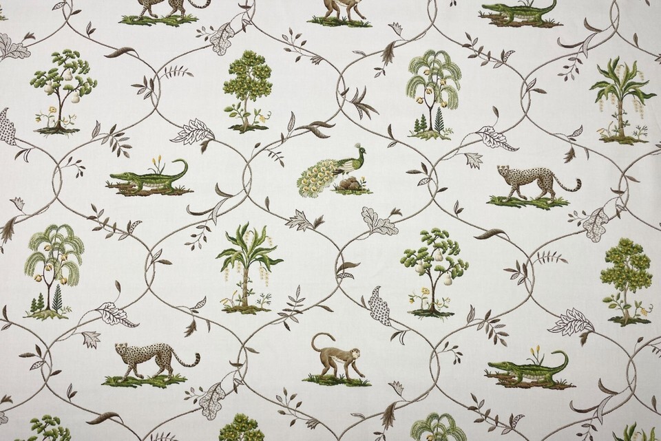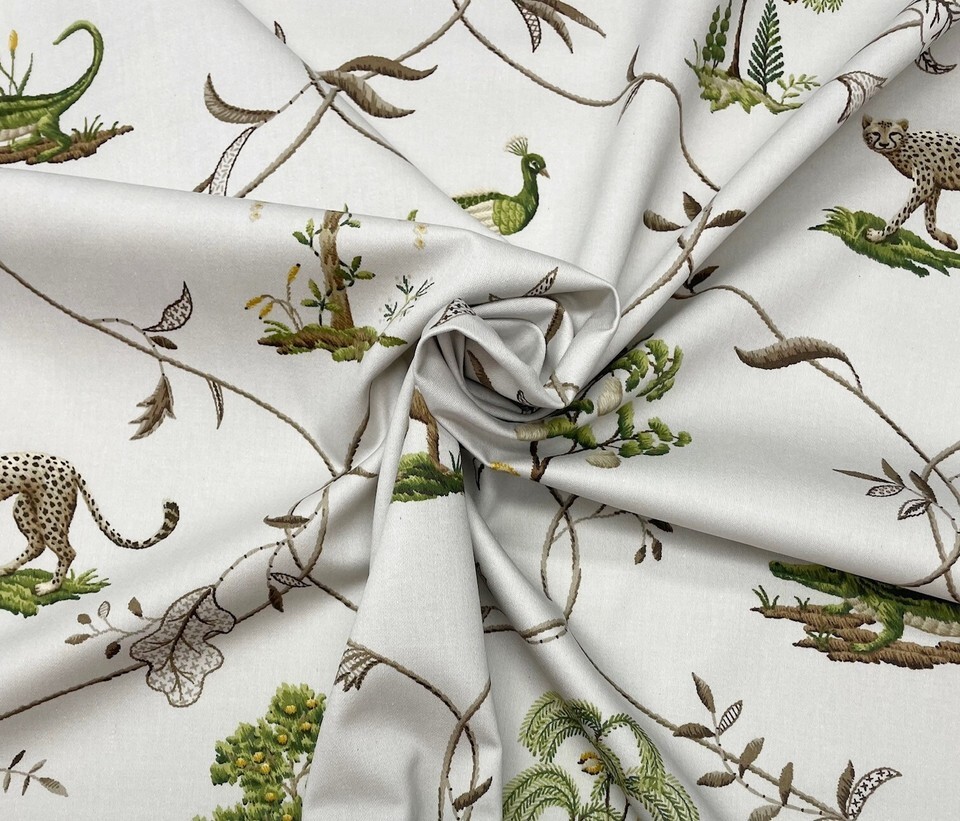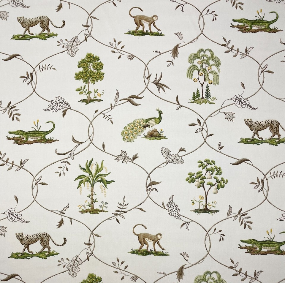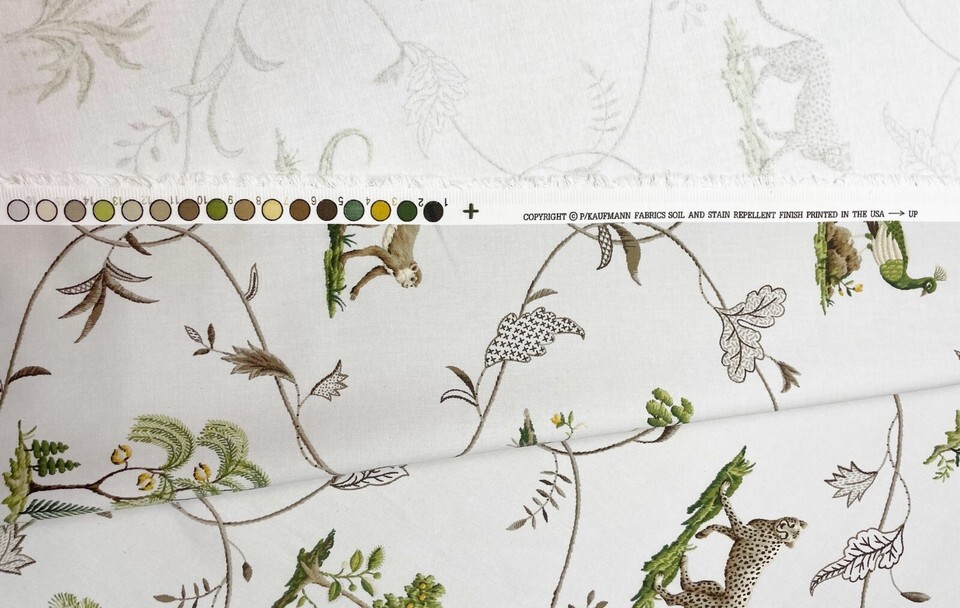 P KAUFMANN VILLANDRY PLATINUM GRAY MONKEY CHEETAH PEACOCK FABRIC BY YARD 54"W