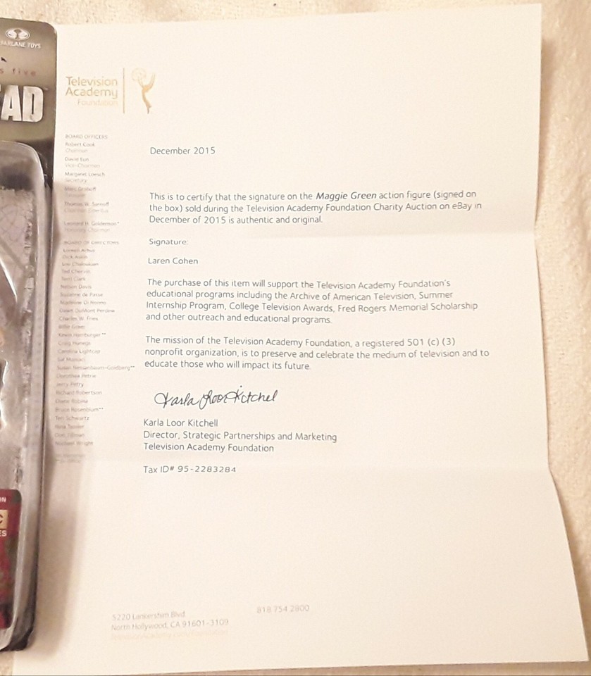 1- Action Figure Signed & 1- L.O.A. Television Academy Foundation |