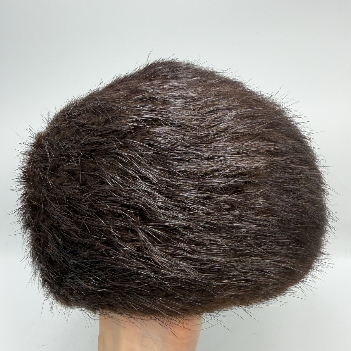 The hat features a soft rounded silhouette typical of mid-century European design. Nutria fur has a beautiful natural sheen and a dense yet lightweight texture, making this hat both stylish and practical for cold weather.