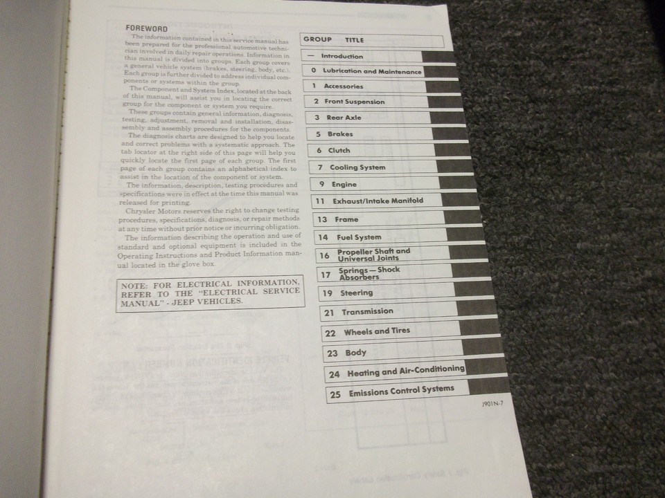 Loads of information and illustrations, covers a lot, no missing pages, step by step instructions, assembly/disassembly, exploded illustrations/diagrams/troubleshooting, great manual to have when owning a JEEP and will keep your JEEP on the road. This manual will save you money in repairs/service.