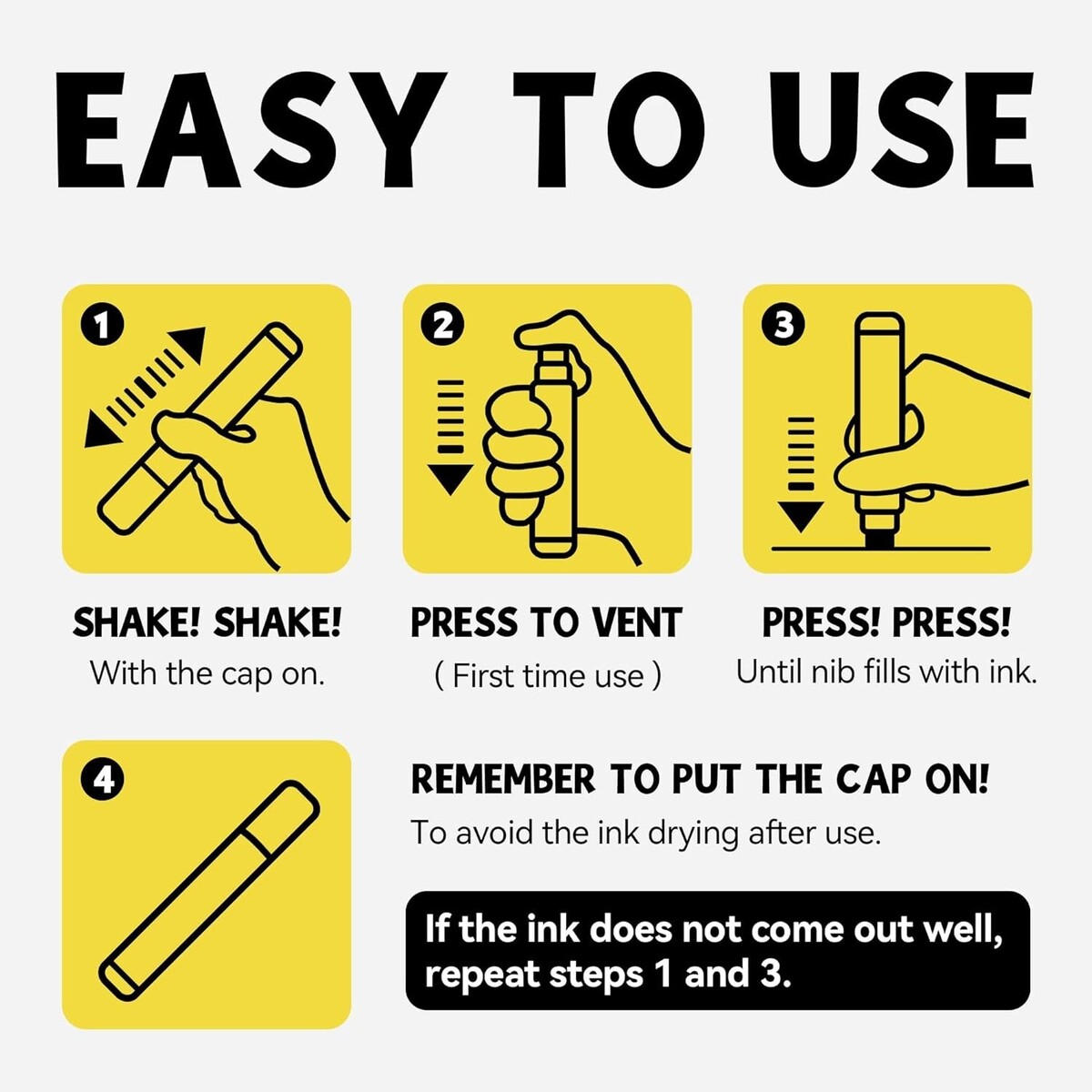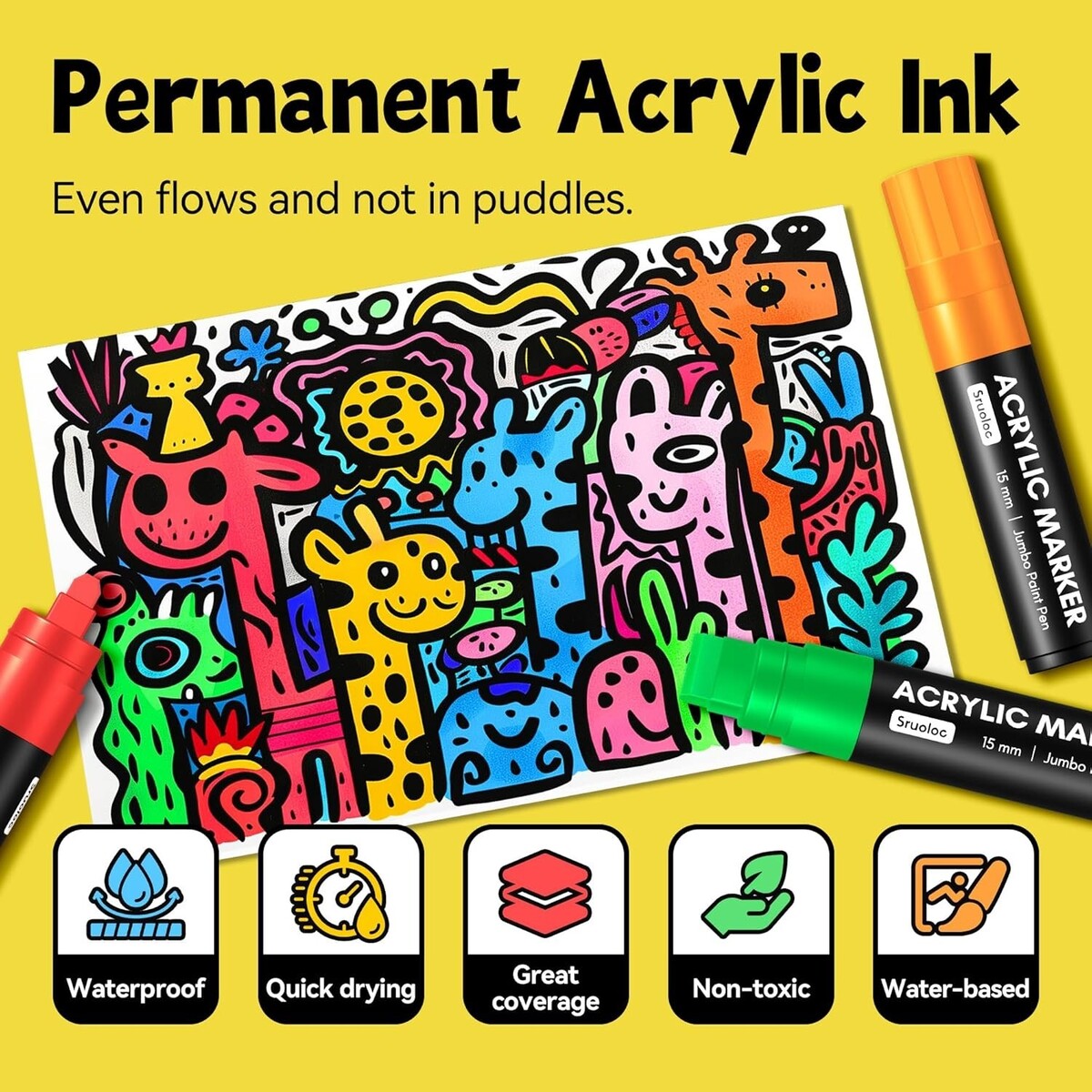 Quality Ink: Made with the highest quality water-based acrylic ink that is waterproof, quick-drying, and permanent.