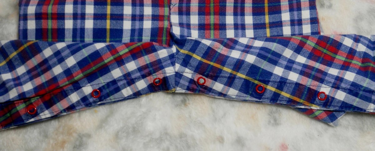 This sale is for a preowned Vintage Baby B'Gosh Hoodie Coverall in sought after MADRAS Plaid. in Baby/toddler size 18 months. This 1 Piece short sleeved Jumpsuit with a Hood in classic Red, Blue White Plaid has a Red hood, 4 enameled Red snaps down the front, and has snap crotch legs. There is a Baby B'Gosh logo patch on the Left arm. Fabric: 100% Cotton. Great for the beach... Measurements: Chest: 27"-- Inseam: 9.25". In good used condition with nice normal fading. Thanks for looking!
