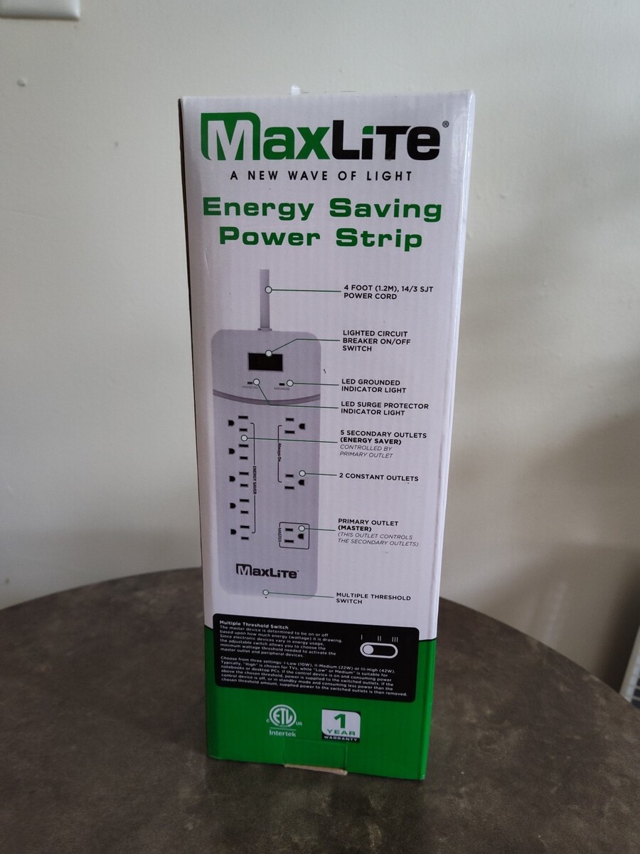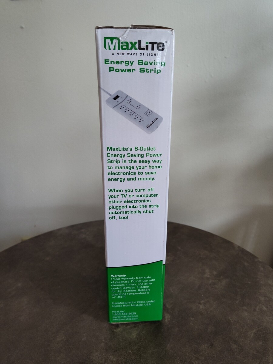 MaxLite Energy Saving Power Strip Surge Protector 8 Outlets Brand New