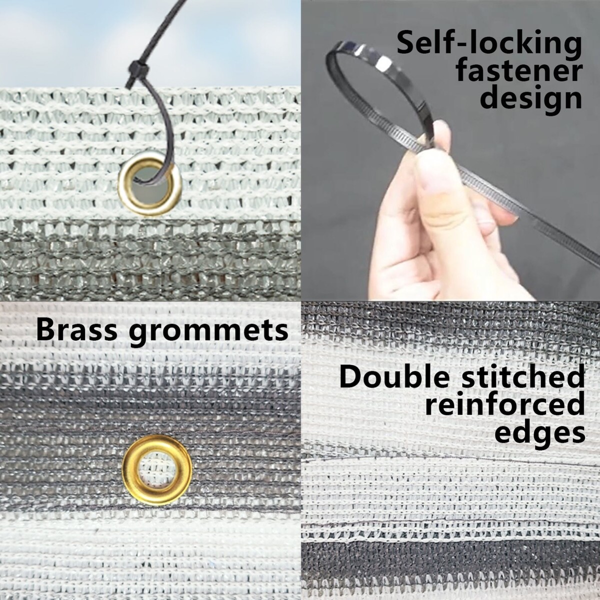 Has copper grommets and zip ties to secure it firmly in place, even under windy conditions. Features waterproof, heavy-duty construction with reinforced seams for added durability.