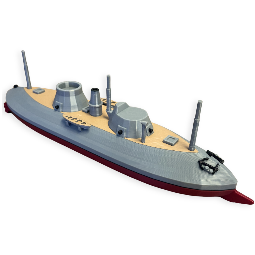 Distinctive Dual-Tower Detail: Features the signature twin non-rotating rounded casemates and the low-profile hull that defined this one-of-a-kind vessel. Every line reflects the bold engineering of the 1860s ironclad era.