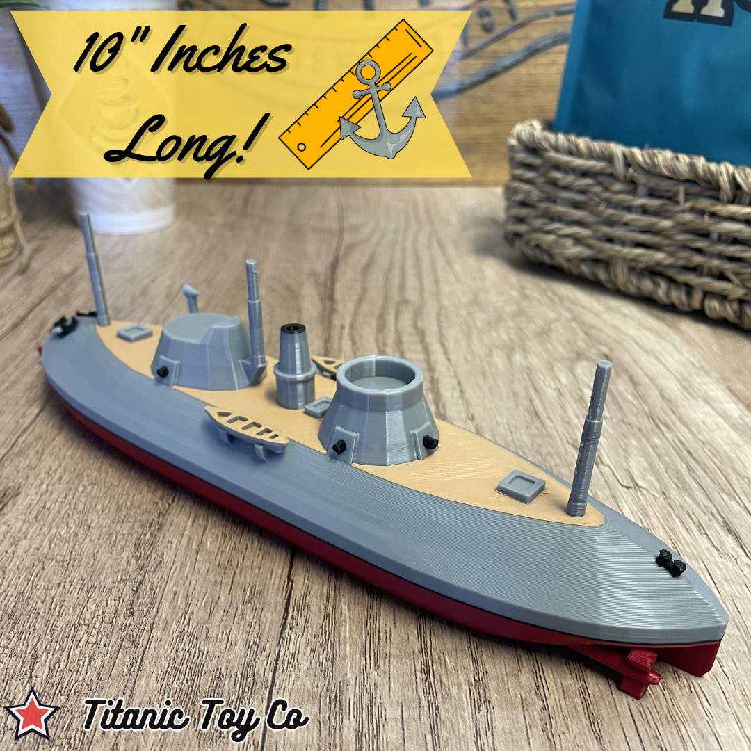 Authentic Semi-Submersible Profile: Meticulously designed to show the Keokuk?s unique ?turtleback? deck and armored towers, capturing the look of the ship as it appeared during its daring 1863 missions.