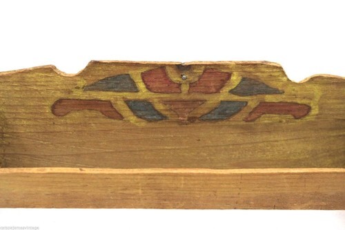 Antique Arts & Crafts Tramp Art Tie or Towel Rack Hand Painted Wood Red Green