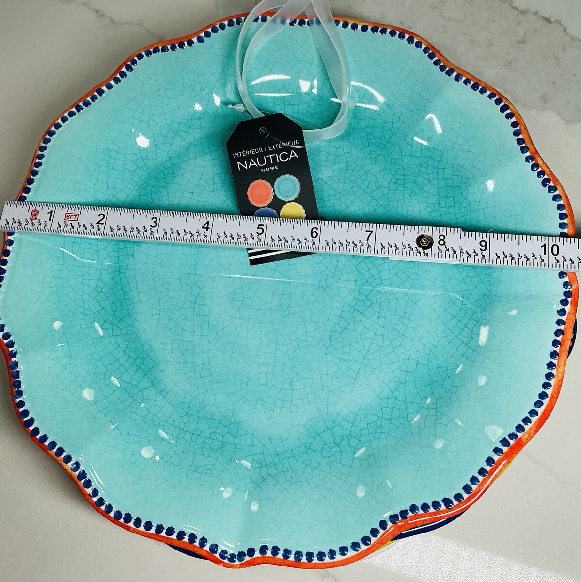 4 Dinner Plates Nautica Melamine 11” Turquoise Blue Orange Yellow New