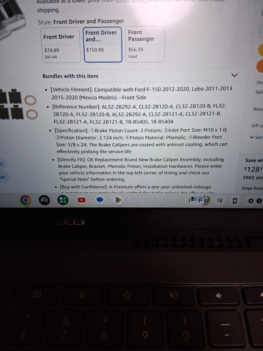 Front Left + Right Brake Calipers For 2012-2016 Ford F-150 2.7L