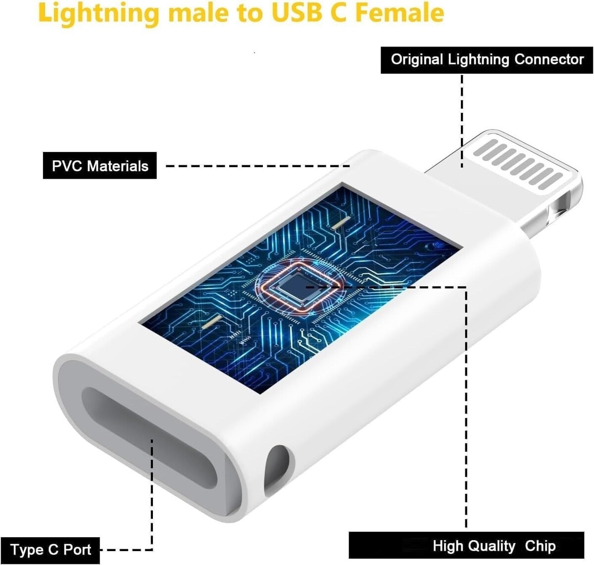 ?Strong Compatible?USB to lightning Dongle adapter are certified by official to meet rigid iPhone requirements and ensures completely and securely connect with your lightning devices.Lightning male to usb c female adapter compatible with iPhone 14/14 Pro Max/13/13 pro/13 pro max/12/12 Pro/12 Pro Max/11/11 Pro/11 Pro Max/ SE / X / XS/ XS MAX/ XR/ 8 /8 Plus/ 7/7 Plus/6 /6/5/5e.