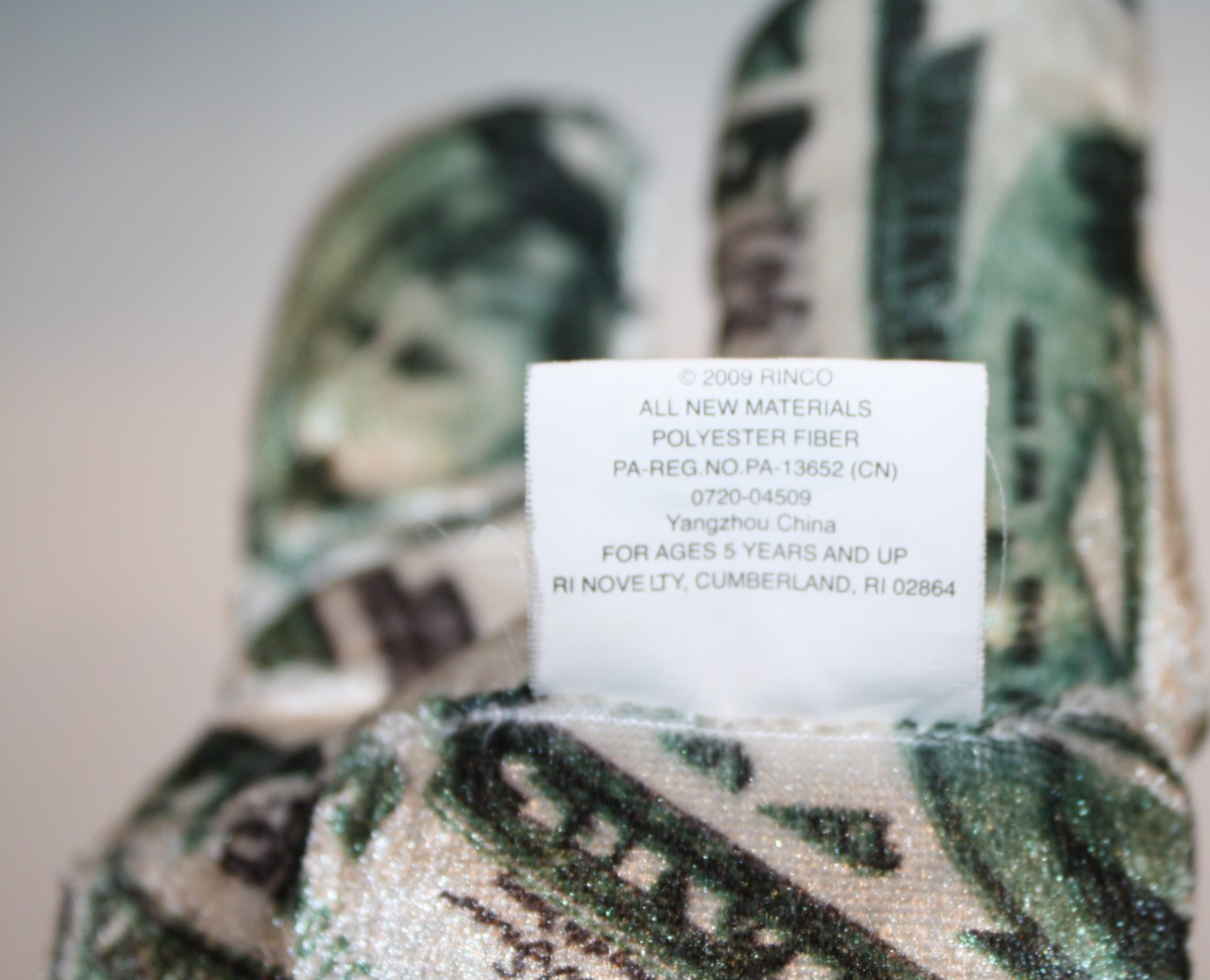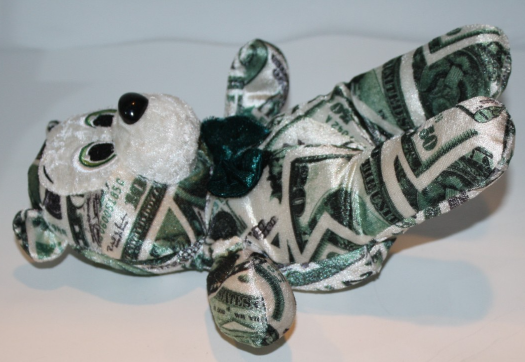 Rinco Money Dollar Teddy Bear Soft Toy Green White Plush Stuffed RI Novelty 2009