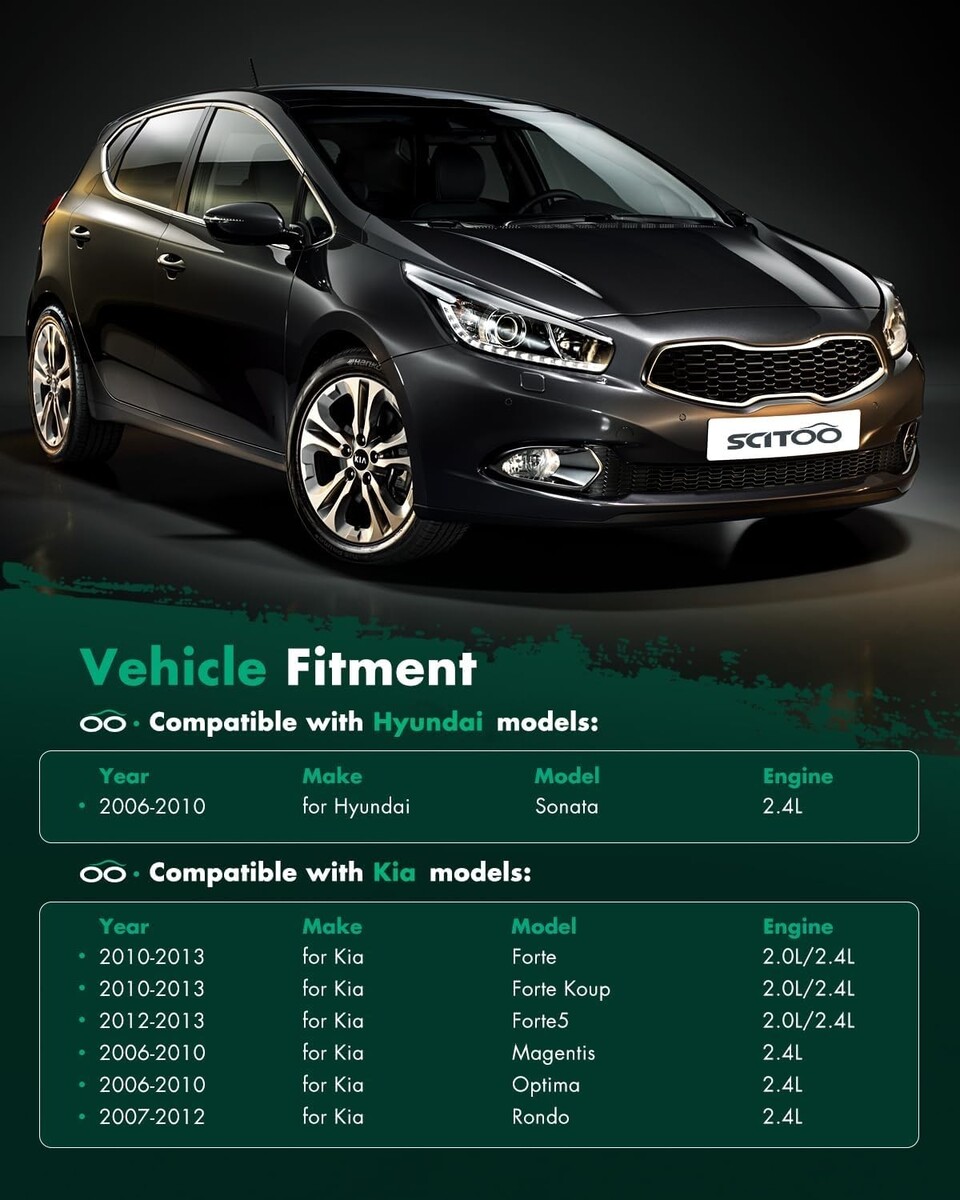 ?COMPABILITY? - Automotive alternator replacement for Hyundai for Sonata 2.4L 2006-2010,for Kia for Forte 2.0L 2010-2013,for Kia for Forte 2.4L 2010-2013,for Kia for Forte Koup 2.0L 2010-2013,for Kia for Forte Koup 2.4L 2010-2013,for Kia for Forte5 2.0L 2012-2013,for Kia for Forte5 2.4L 2012-2013,for Kia for Magentis 2.4L 2006-2010,for Kia for Optima 2.4L 2006-2010,for Kia for Rondo 2.4L 2007-2012