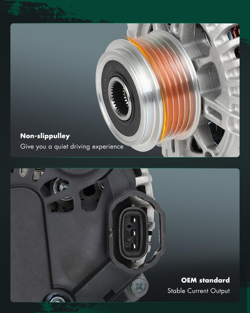 ?Reliable Alternator Replacement? - Bearing 100% tested to OE standards and repacked with OEM grade lubricant. All dimensions, key mounting surfaces, and contact points are gauged and measured for proper fit. Throught igorous and accelerated cycling tests to ensure the quality and durability of product.Backed by a full 24-month unlimited-mileage guarantee on our build quality automotive alternators. Drive with confidence total peace of mind.