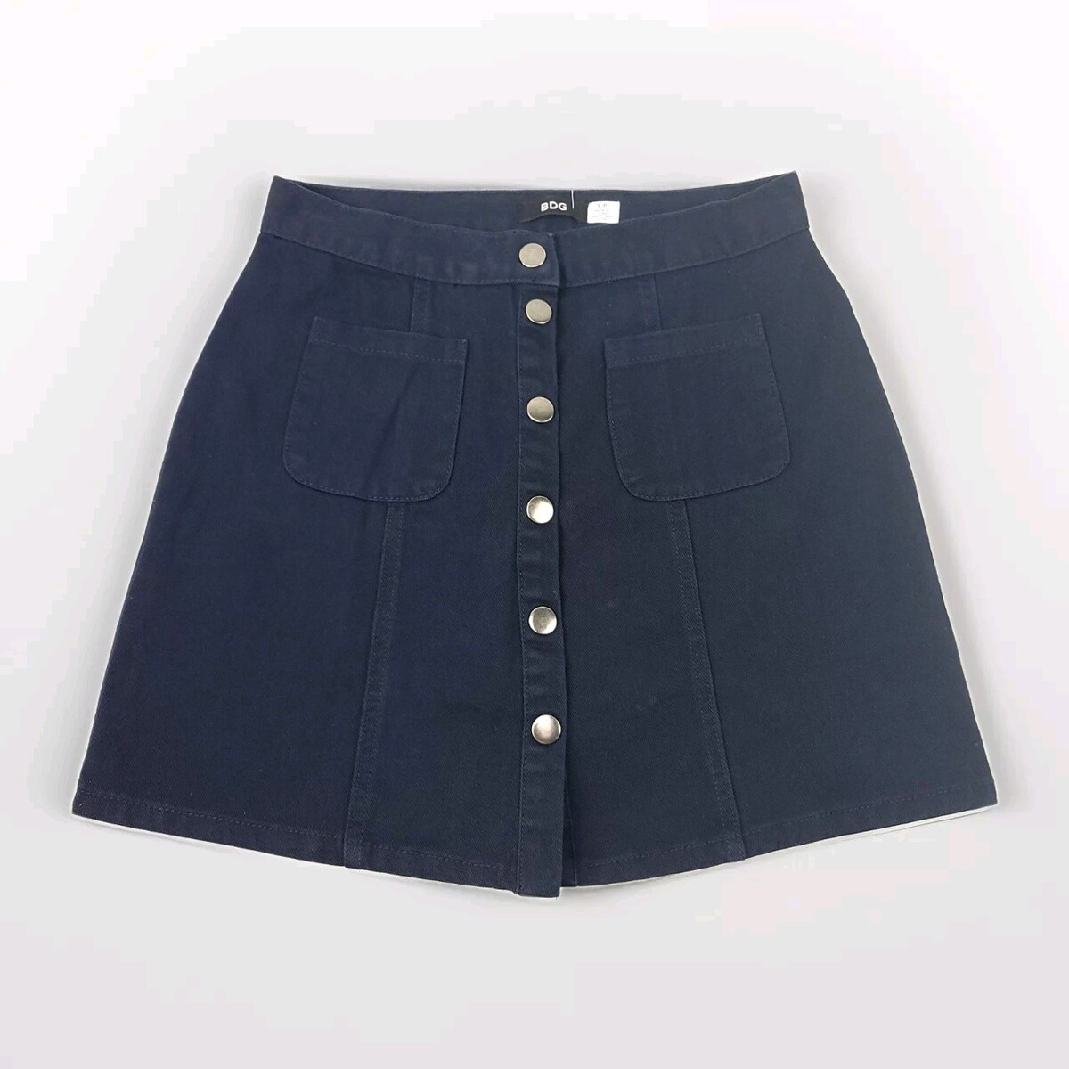 BDG Dark Wash Button Front Denim Jean Skirt Size SP Navy Marin Urban Outfitters