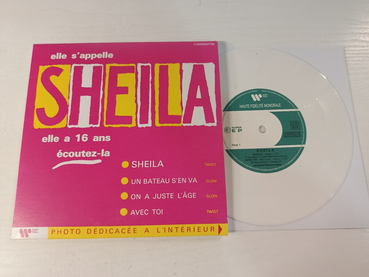Sheila, Elle a 16 ans, vinilo blanco, single 7 pulgadas, pop frances, ye ye, reedicion 2022, Warner Music France, vinilo coleccionista, música años 60, vinilo nuevo, foto dedicada, twist frances